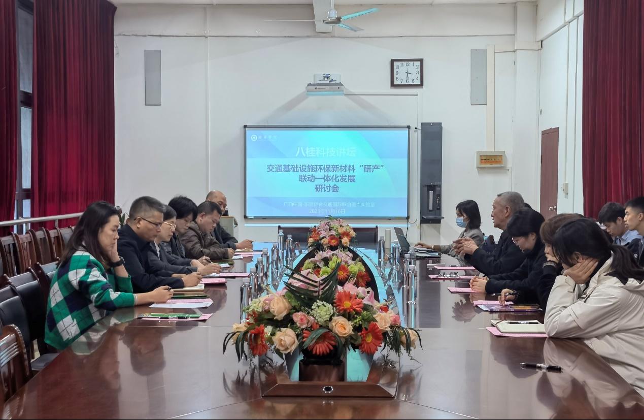 下午,广西中国-东盟综合交通国际联合重点实验室(以下简称“重点实验室”)与中交一公局第四工程有限公司于南硅谷E举行“新型环保材料研发中心”揭牌仪式,并召开交通基础设施环保新材料“研产”联动一体化发展研讨会。
