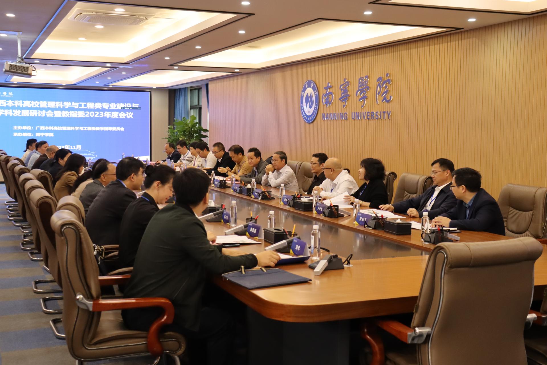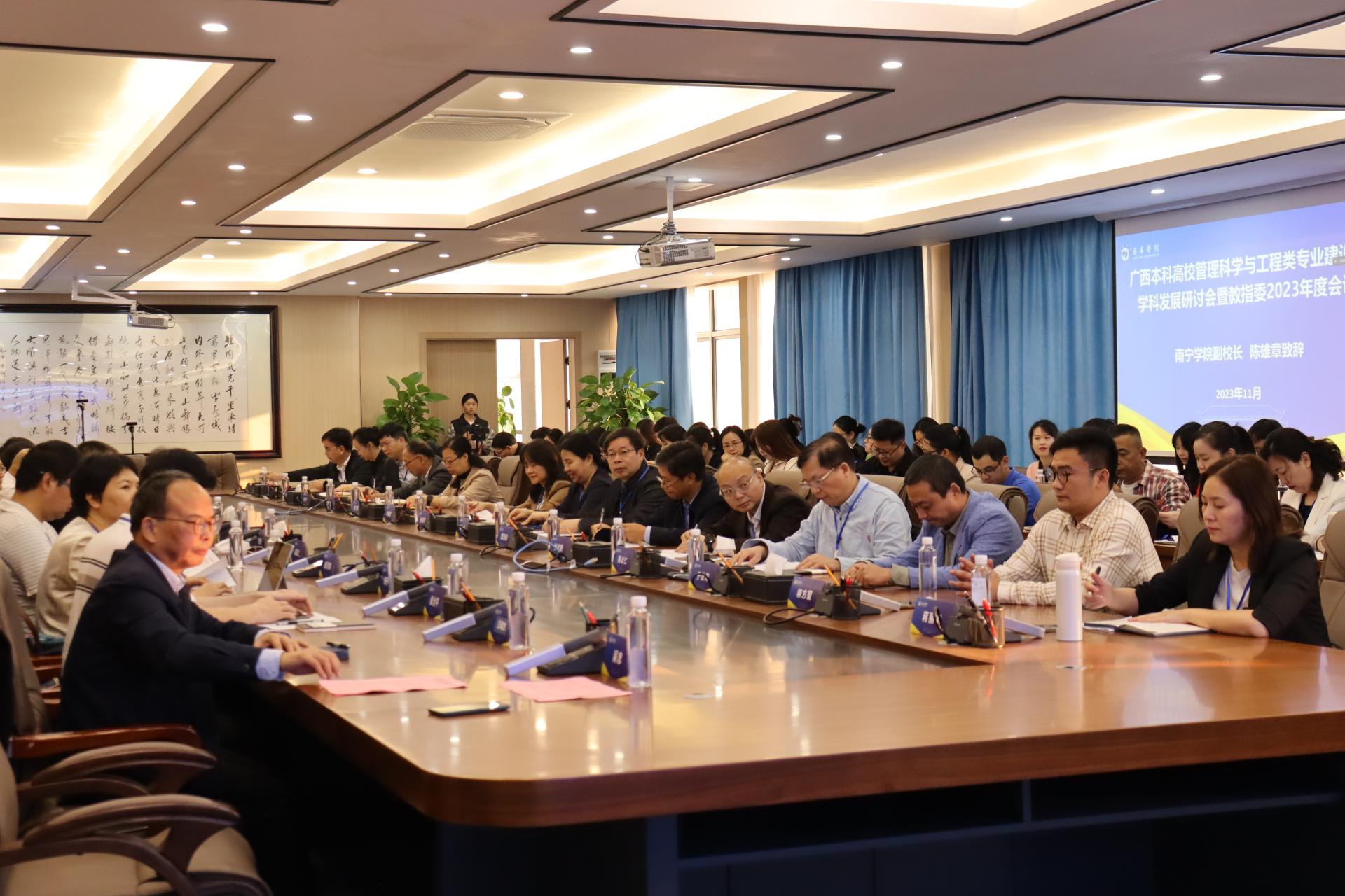 11月25日,广西本科高校管理科学与工程类专业建设与学科发展研讨会暨教指委2023年度会议在南宁学院行政楼会议室举行,来自区内外的多位知名专家学者齐聚一堂,围绕“管理科学与工程类专业建设与学科发展”发言与研讨,为数智化时代人才培养贡献学术智慧和力量。南宁学院副校长陈雄章教授出席会议并致辞。广西本科高校管理科学与工程类教学指导委员会主任委员、桂林理工大学曾繁荣教授出席年会并致辞。广西本科高校管理科学与工程类教学指导委员会17位委员出席年会。南宁学院商学院院长汪涛教授率团参加会议。会议由南宁学院商学院党委书记吴忠主持。