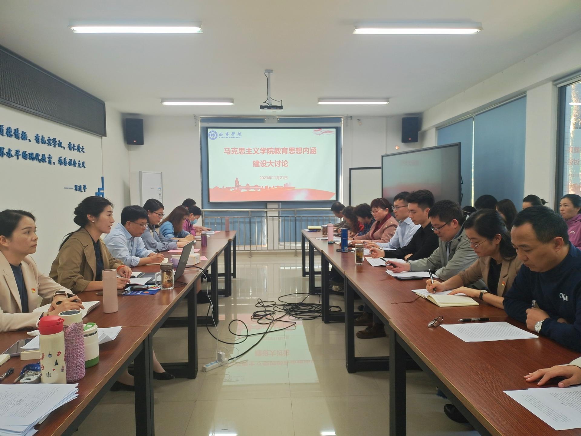 为贯彻落实党的二十大精神,进一步厘清学院未来发展方向,根据学校开展“十四五”发展规划中期评估暨内涵建设大讨论活动的相关工作要求,马克思主义学院围绕“内涵建设重点难点和着力点”和“持续加强师德师风、教风学风、工作作风建设”两大主题,以党政联席会、分教研室研讨会和学院层面大讨论为依托,分层次、有重点的开展覆盖全员的内涵建设大学习、大调研、大讨论,经过各教研室充分的研讨和交流,学院层面大讨论于11月21日下午在行政楼125进行。校党委书记刘彪出席研讨交流,讨论会由马克思主义学院院长董艳主持,学院全体教师参加。
