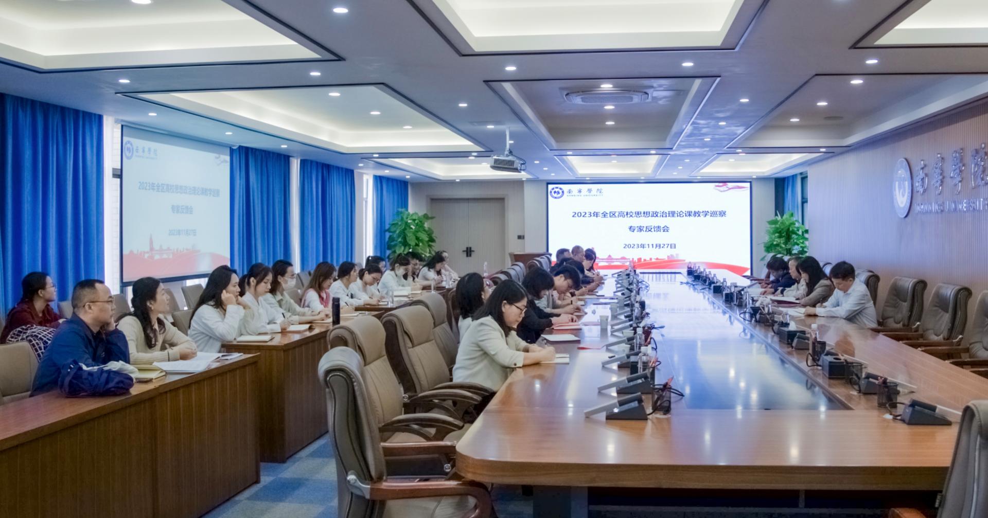 在反馈会上,徐魁峰教授代表巡察组专家对此次巡察工作情况进行了反馈:南宁学院坚持社会主义办学方向,高度重视思政课课程建设,取得明显成效,主要表现在:一是领导重视,高站位推动思政课建设,认真落实党委抓思政课建设的主体责任,认真领会上级党委的相关要求,健全思政课建设的各种规章制度和机制,加强对思政课建设的保障支持;二是高标准开设“习近平新时代中国特色社会主义思想概论”课程,配强配齐思政教师,开展团队集体备课,及时融入党的创新理论成果进课堂;三是多路径推进思政课建设,协同推进思政课程与课程思政建设,规范教学过程管理,扎实推进实践教学,师生教学竞赛成绩突出;四是高质量完成2022年思政课巡察反馈问题的整改。此外专家组还就如何加强思政课教师队伍建设并运用好本地资源打造亮点特色等问题进行指导。