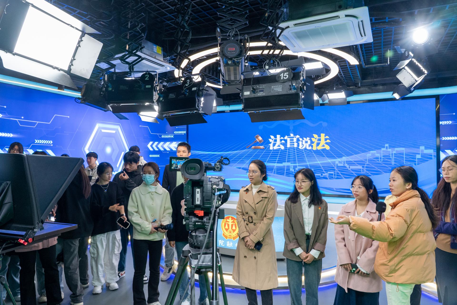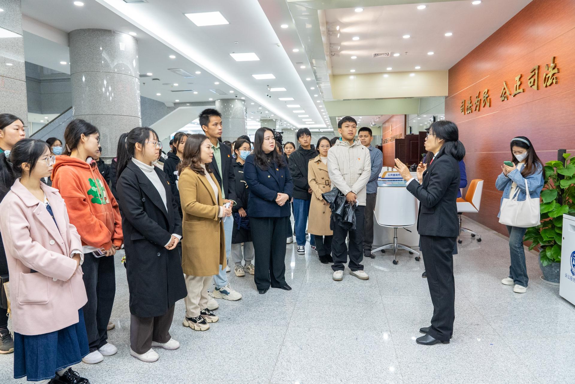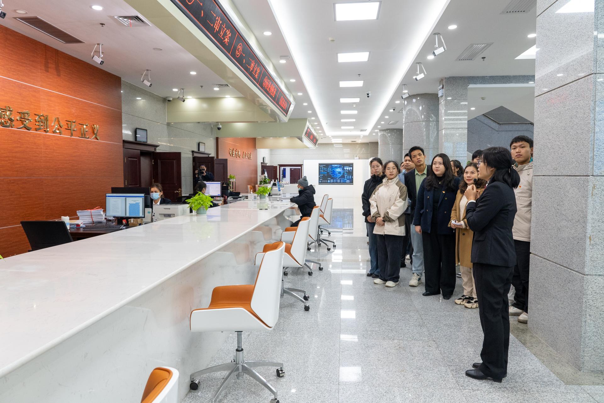 师生们参观诉讼服务中心、科技法庭、融媒体中心和信息化中心