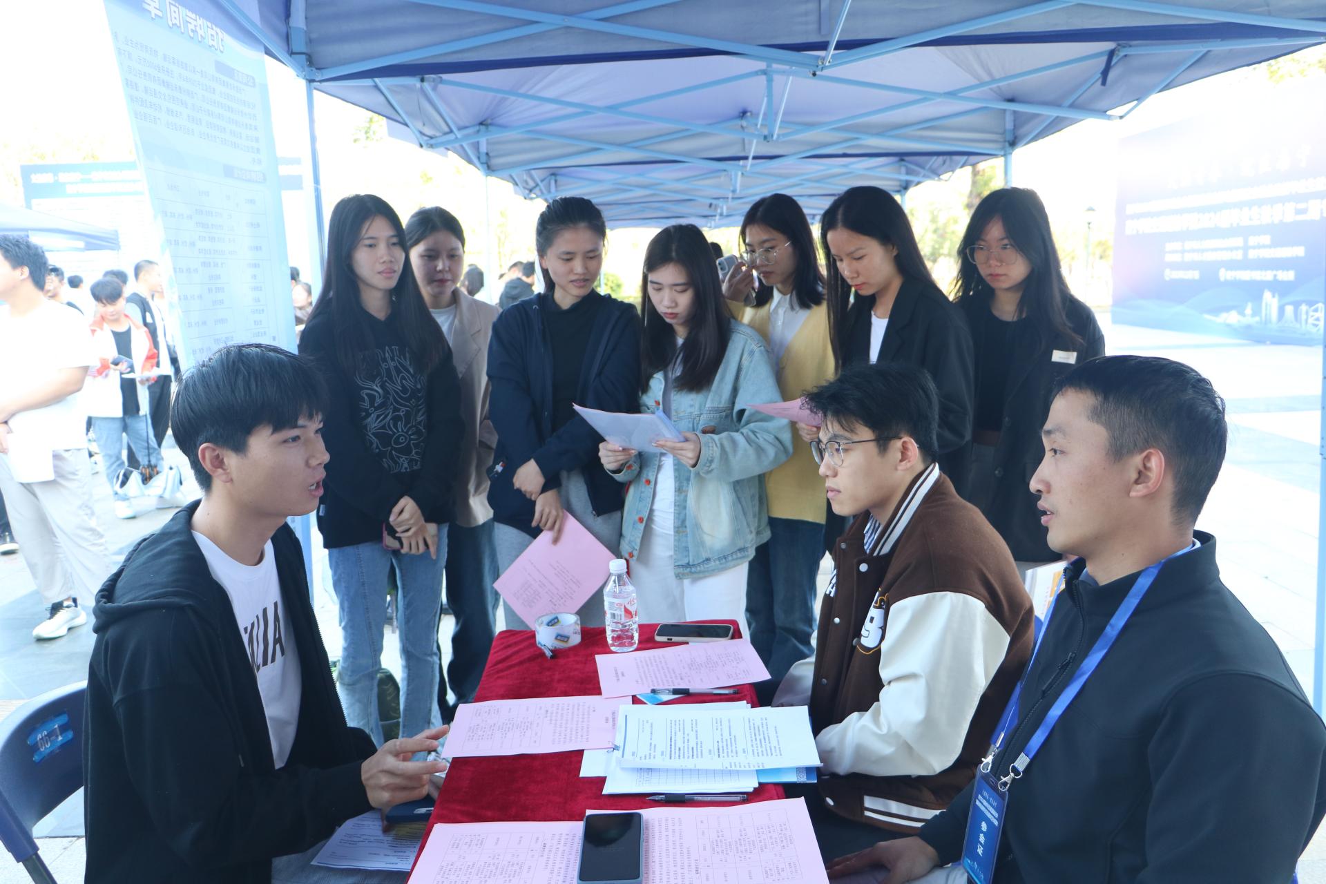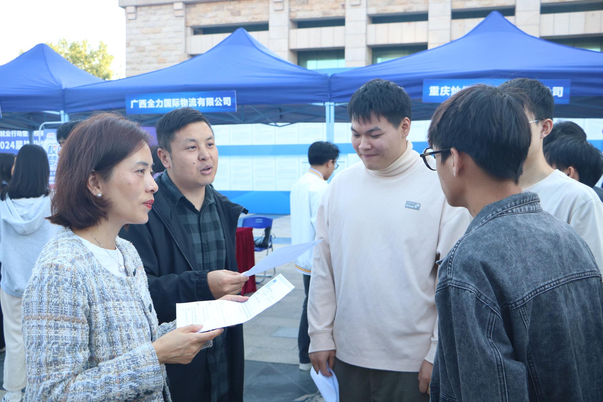 为深入学习贯彻党的二十大精神,抓好党中央、国务院和自治区党委、政府关于做好高校毕业生就业工作的指示精神和决策部署,更好地搭建用人单位与在校学生的沟通交流平台,12月7日下午,南宁学院交通运输学院联合南宁市人力资源和社会保障局在图书馆北面广场顺利举办南宁市2024届高校毕业生来邕留邕就业行动暨离校未就业高校毕业生就业服务攻坚行动、南宁学院交通运输学院2024届毕业生秋季第二期“精专”招聘会。本次招聘会邀请了中国人民财产保险股份有限公司南宁市分公司、中国太平洋财产保险股份有限公司广西分公司、广西泰禾发展集团有限公司、广西京东信成供应链科技有限公司、广西全力国际物流有限公司等20家企业参会,为学院毕业生提供了近45个岗位,计划招聘人数1187个,为2024届毕业生们提供了丰富的就业机会,吸引了将近1000名学生入场应聘,现场气氛热烈。南宁学院学工处副处长田爽、交通运输学院党委书记卢柳青深入招聘现场,细心询问招聘单位详细情况、毕业生就业意向,助力毕业生和用人单位双向选择、实现双赢。