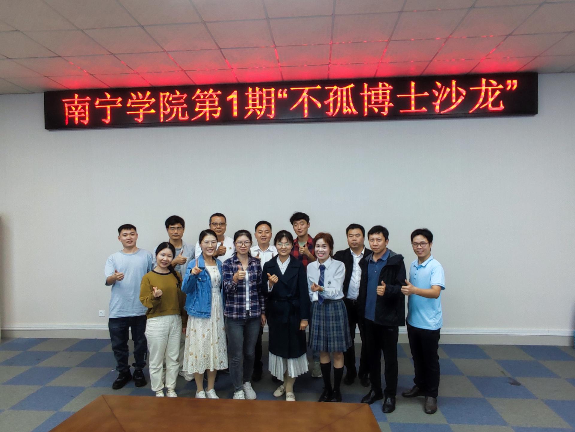南宁学院第1期“不孤博士”沙龙圆满结束,本次“不孤博士”沙龙为学校博士教师们搭建了学术交流平台,推动各学院博士教师间的科研合作交流,也促进博士教师间的情感交流。(科研与学科建设处供稿)