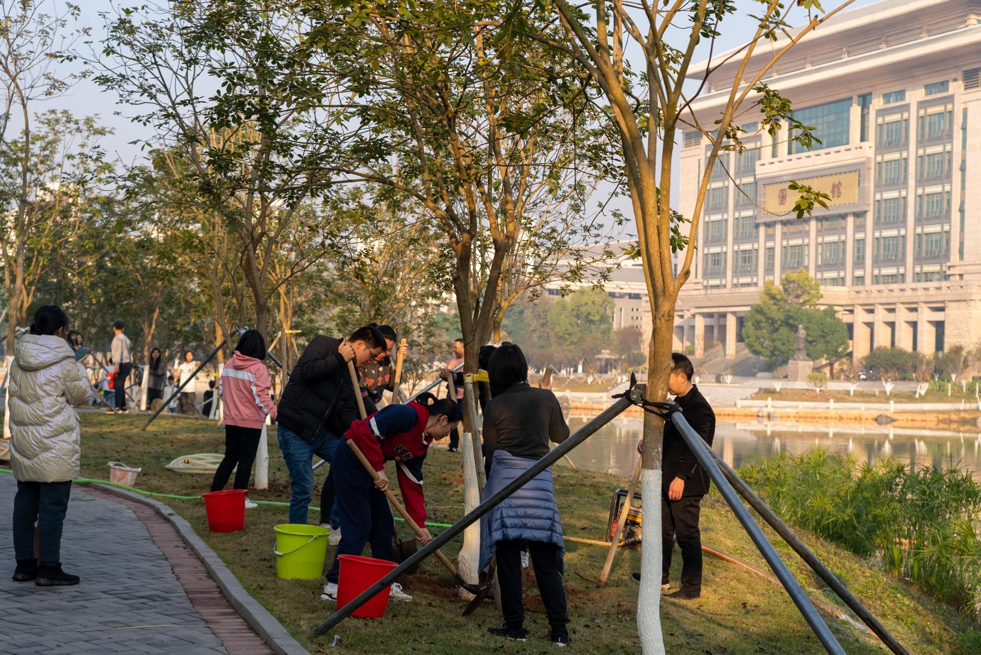 为引导同学们崇尚劳动、尊重劳动,深化大学生劳动教育,12月28日上午,李栋学校长带队开展劳动教育实践活动,为不孤湖畔的黄花风铃施肥。校党委副书记、副校长韦粤桂,后勤保障与基建管理处教职工代表,艺术与设计学院师生代表参加了本次劳动。