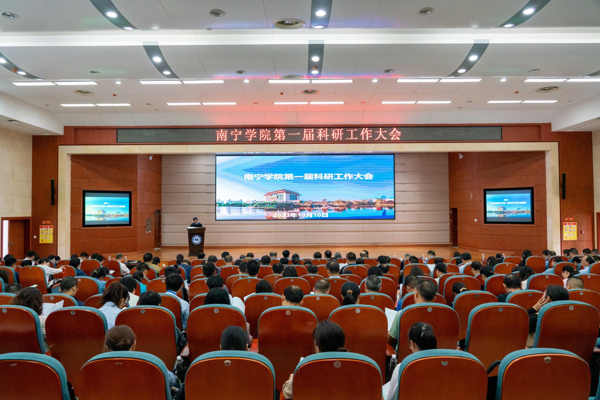 10月10日,南宁学院召开第一届科研工作大会第一阶段会议,参加大会的有:学校校长李栋学、党委书记刘彪、党委副书记韦粤桂,副校长陈雄章、李陶深、龚击,学校学术委员会委员、教授、博士、各立项建设硕点及方向负责人、各单位和部门负责人以及科研骨干代表。本次大会分两个阶段召开,10月10日下午为第一阶段,第一阶段又分大会和小组讨论两个时段,大会由刘彪书记主持。