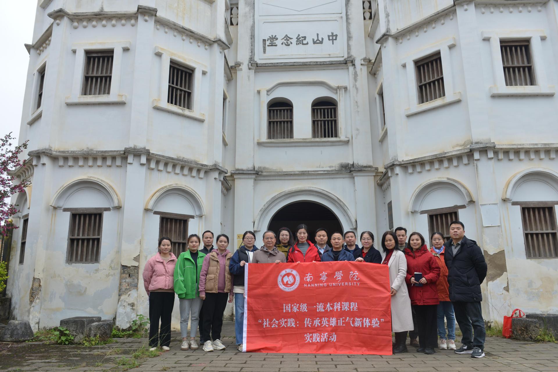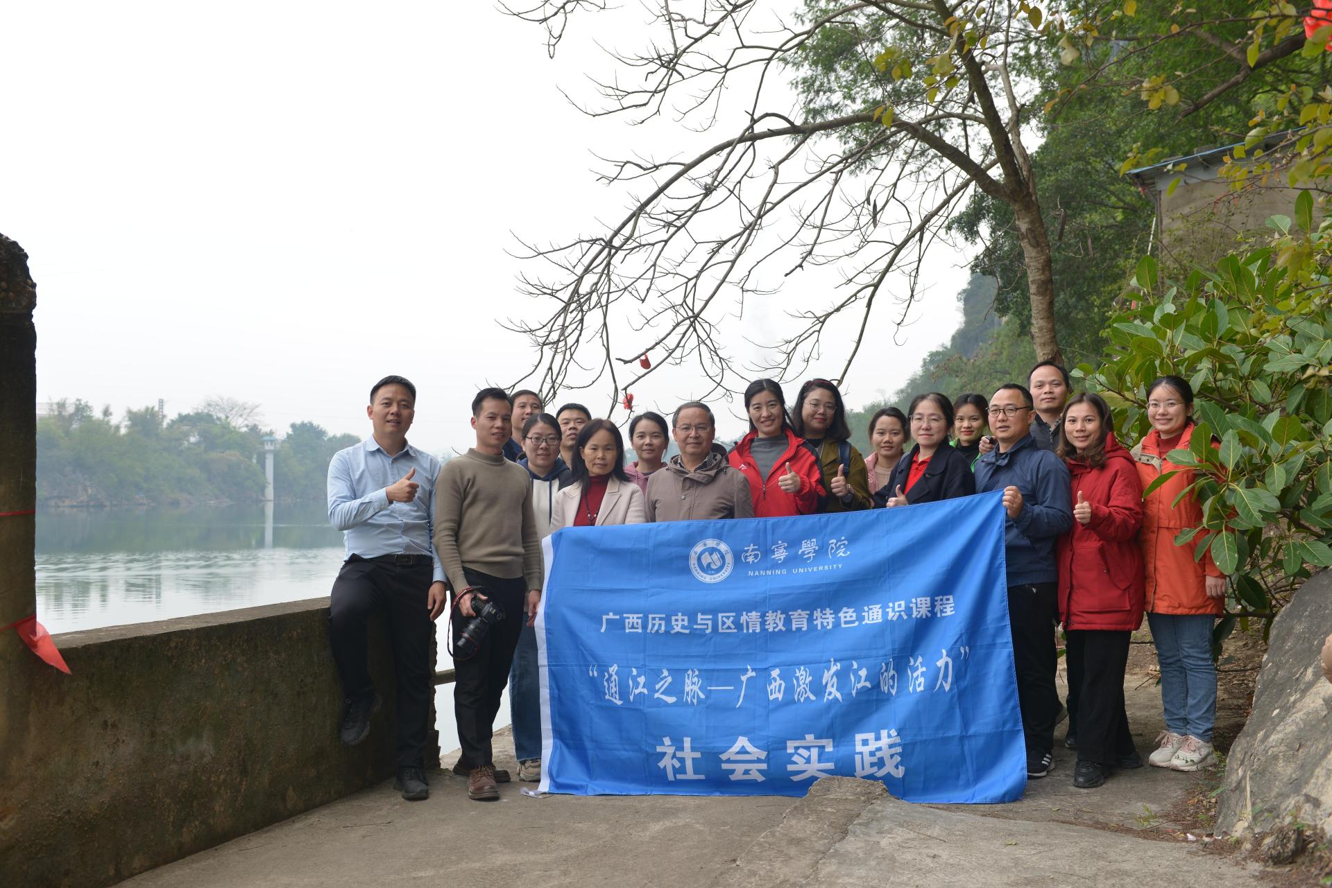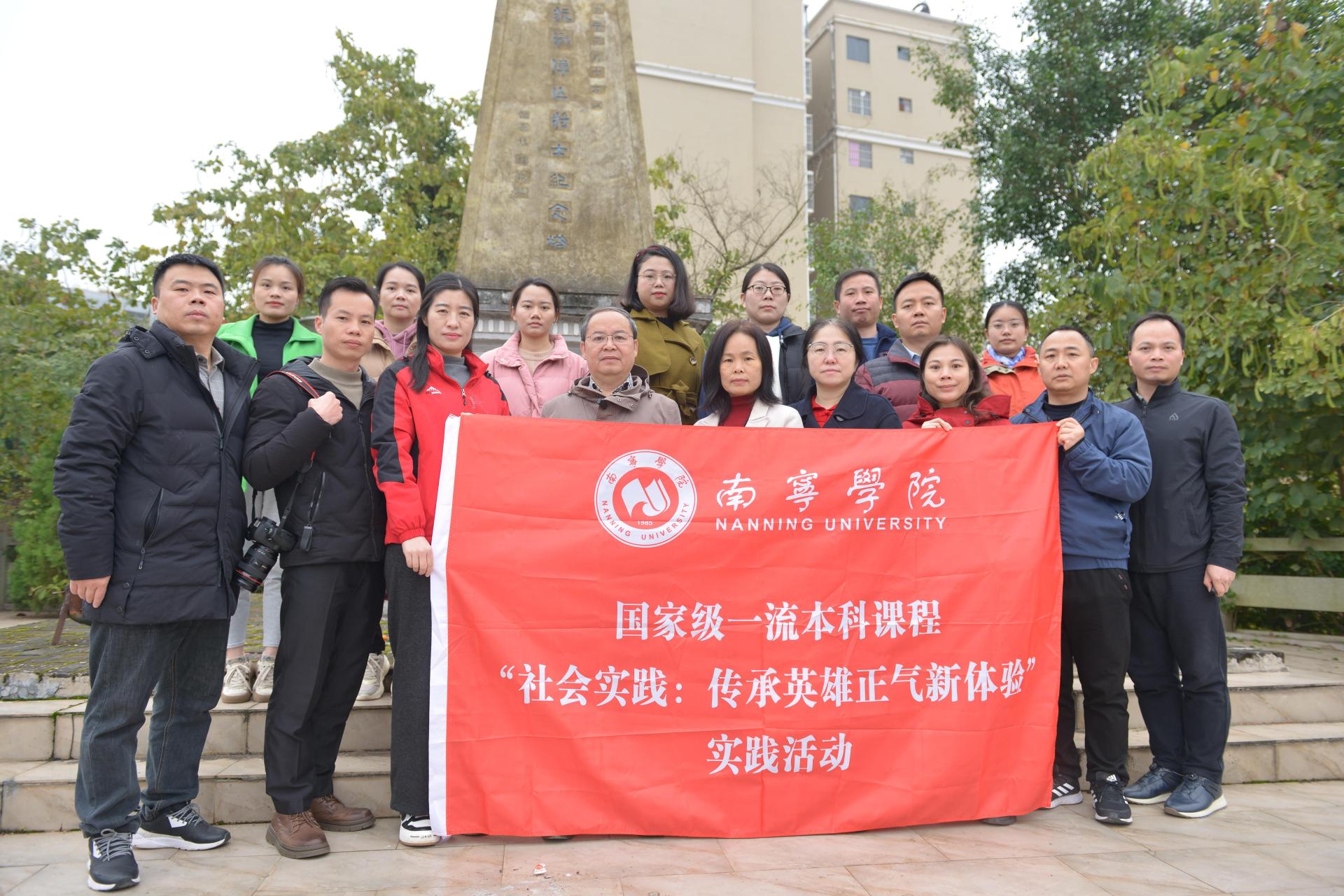 3月3日,南宁学院国家级一流本科课程“社会实践(传承英雄正气新体验)”和广西历史与区情教育特色通识课程“通江之脉——广西激发江的活力”课程团队赴崇左市扶绥县开展调研活动。调研活动由课程负责人、学校副校长陈雄章教授带领和指导,课程组一行17人先后到山圩镇桂南会战山圩阻击战纪念塔、东门镇中山纪念堂、金鸡岩、龙头乡老街及左江沿岸等地,考察抗战历史、孙中山文化及左江流域历史文化。