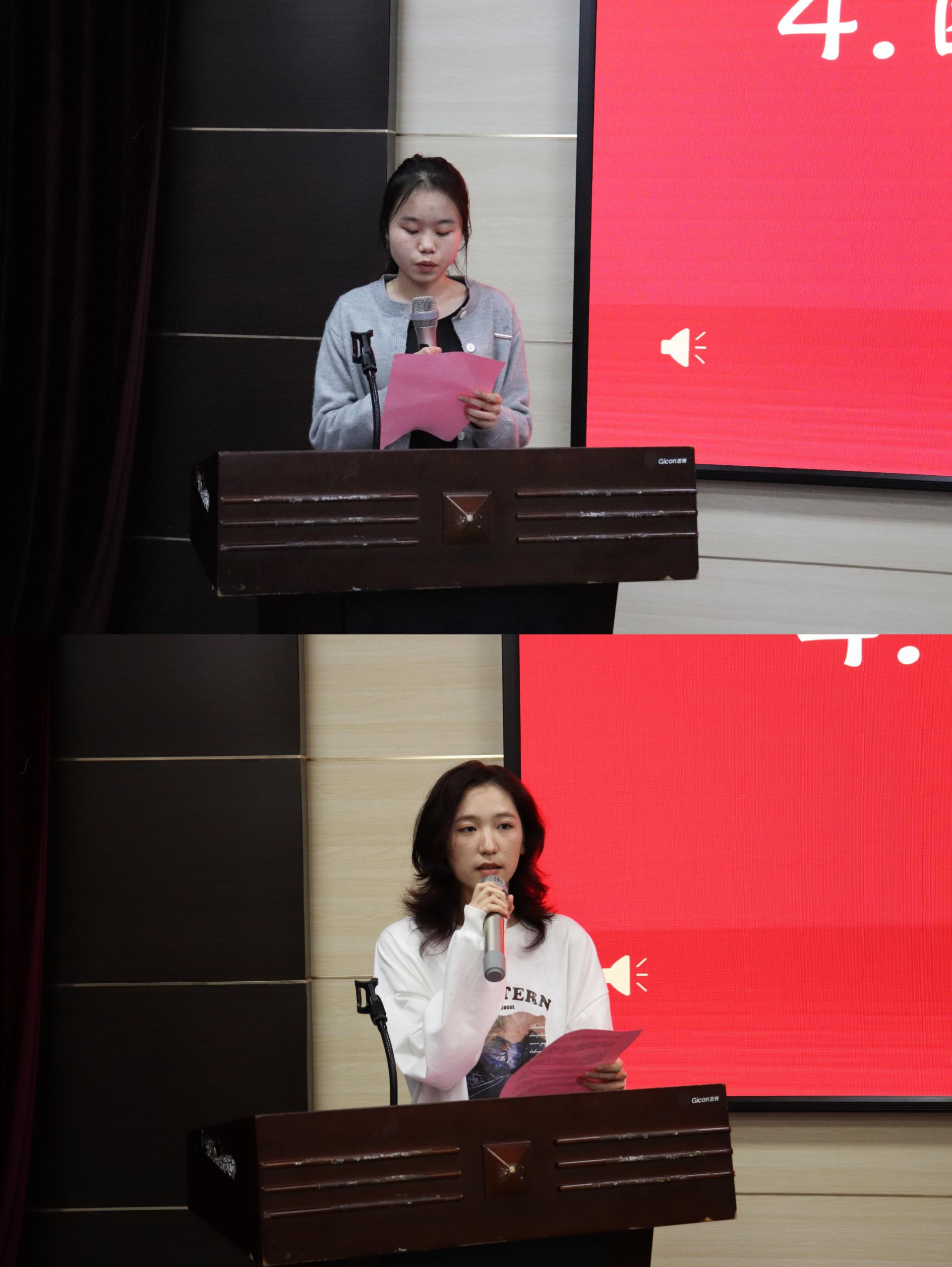 学生副书记唐丽婷、学生会主席吕荛彤发言