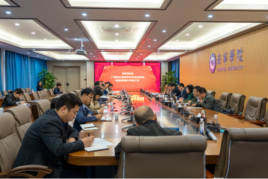 3月22日,以广西开放大学校长王兴辉为组长的广西民办高校年检工作组(以下简称工作组)一行6人莅临我校实地检查2023年度办学情况,学校校长李栋学、党委书记刘彪、副校长陈雄章、副校长龚击及相关部门负责人参加会议。会议由工作组组长王兴辉主持。