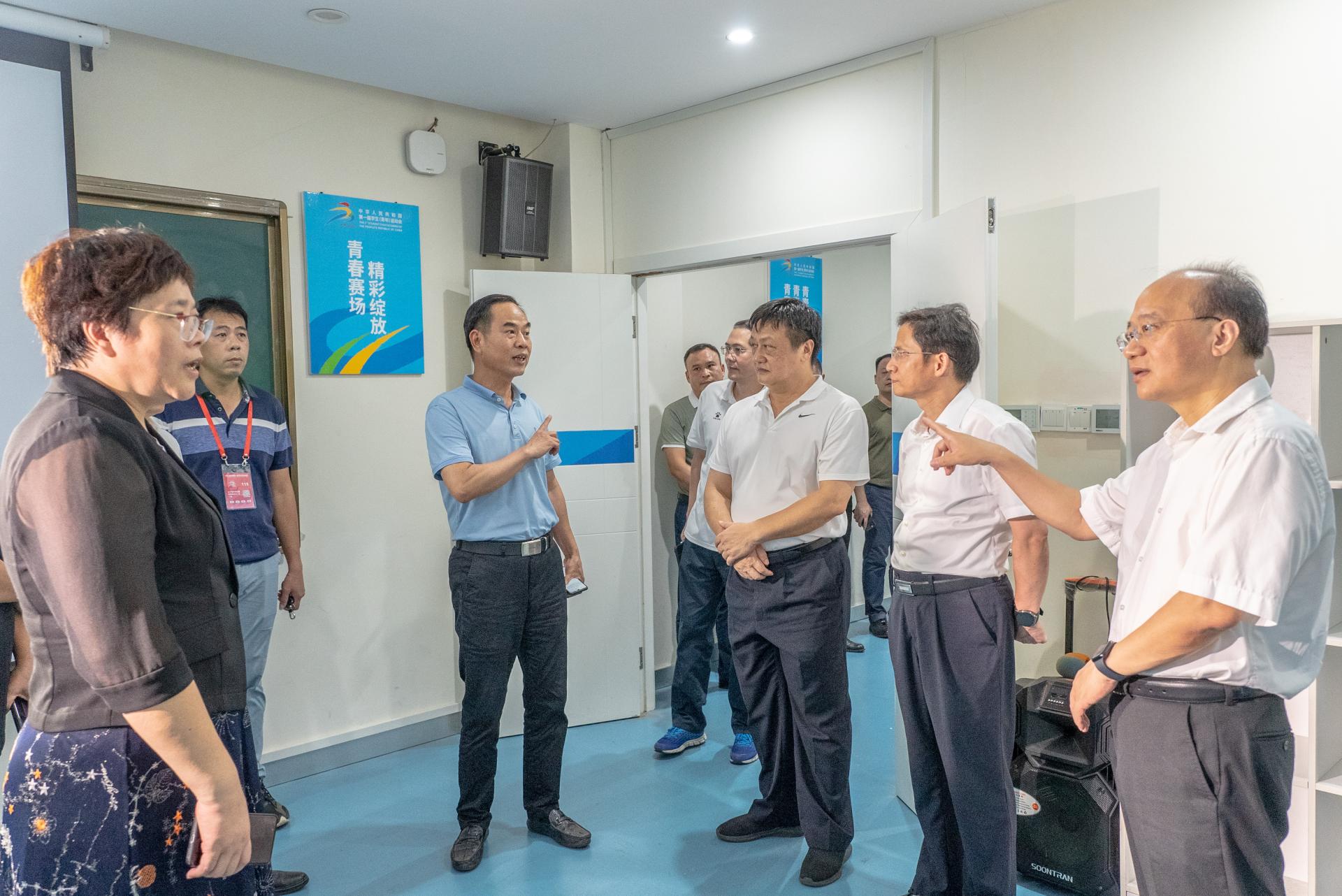 为确保学青会手球项目在南宁学院顺利举办,切实做好服务学青会赛事各项保障工作,8月11日,广西壮族自治区人民政府副主席、党组成员廖品琥对南宁学院学青会手球比赛场馆筹备工作情况开展了调研视察,进一步了解南宁学院筹备学青会手球比赛工作的落实情况,为办好学青会提出宝贵建议。廖副主席前往南宁学院学青会手球比赛场馆进行了实地察看,详细了解了场馆在安全保卫、医疗服务、后勤保障等方面工作的开展情况,并听取相关介绍。