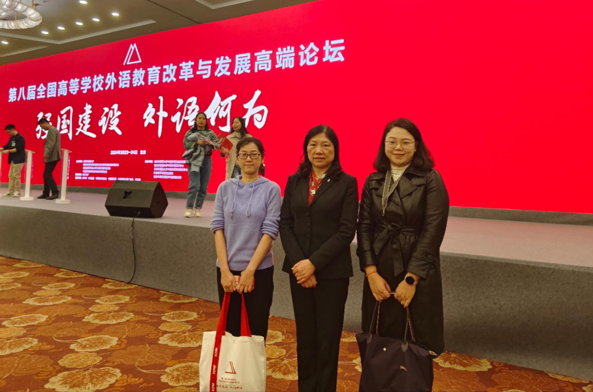 2024年3月23日至24日,东盟学院大学外语教研室主任陶婕、副主任陈柳彬、教师代表张天乾教授一行赴北京参加第八届全国高等学校外语教育改革与发展高端论坛。本次论坛主题为“强国建设 外语何为”,教育部领导、外指委和大外指委委员及近2000位高等外语教育界专家学者齐聚论坛,近20万高等外语教育同仁云端参会,共探高等外语教育服务强国建设路径,共谋高等外语教育高质量发展全新格局。教育部高等教育司副司长武世兴,教育部高等学校大学外语教学指导委员会主任委员、浙江大学何莲珍教授等领导和国内知名外语专家学者作主旨发言,以高远站位与深入视角,全面规划和指引高等外语教育服务强国建设发展方向。