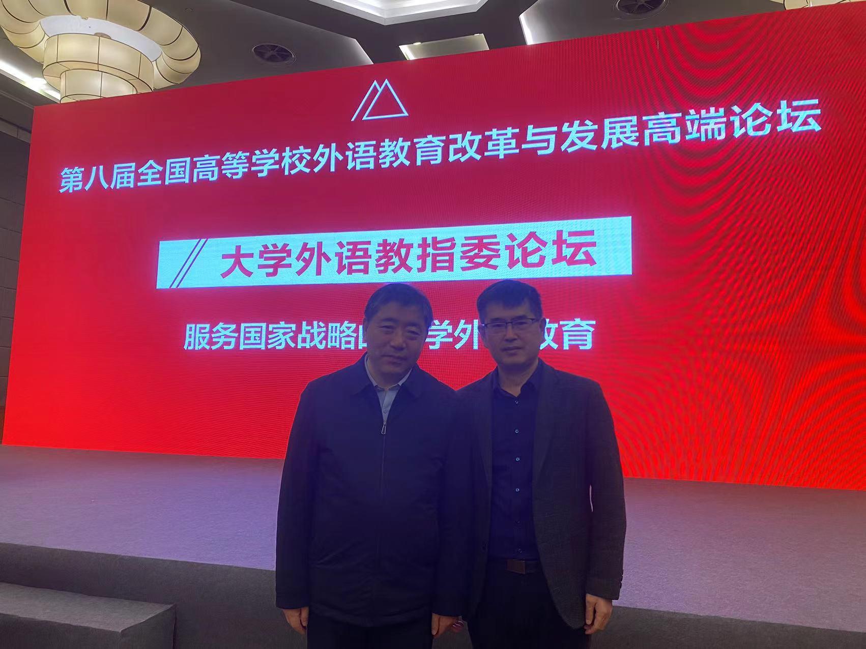 张天乾教授和教育部高等学校大学外语教学指导委员会副主任委员、对外经济贸易大学英语学院院长、博士生导师向明友教授合影