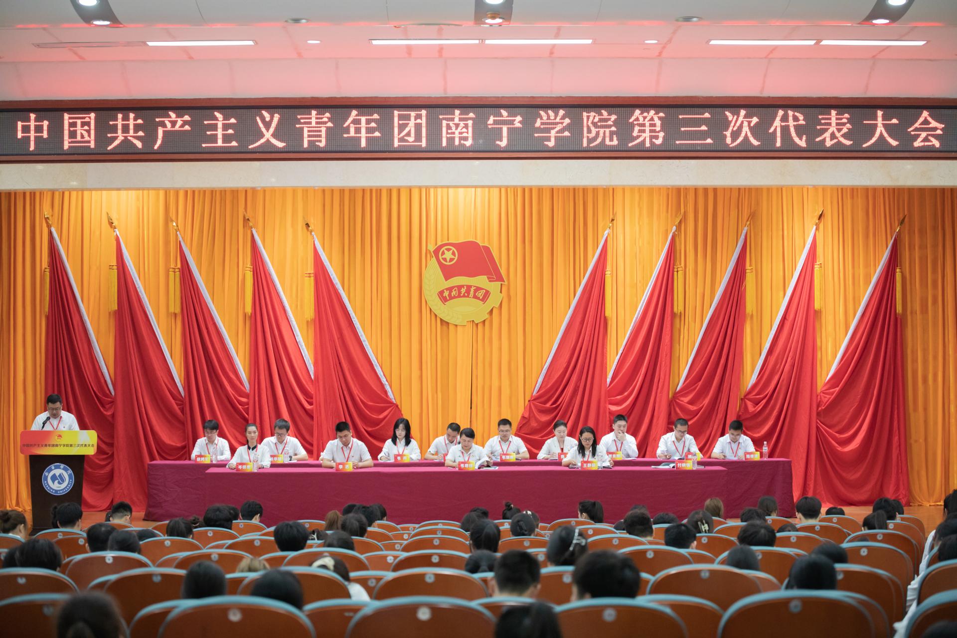大会审议并通过了共青团南宁学院第二届委员会工作报告,选举产生了共青团南宁学院第三届委员会。梁信舅同志在大会上宣读倡议书,岑铭君同志致闭幕词,大会在《中国共产主义青年团团歌》中胜利闭幕。