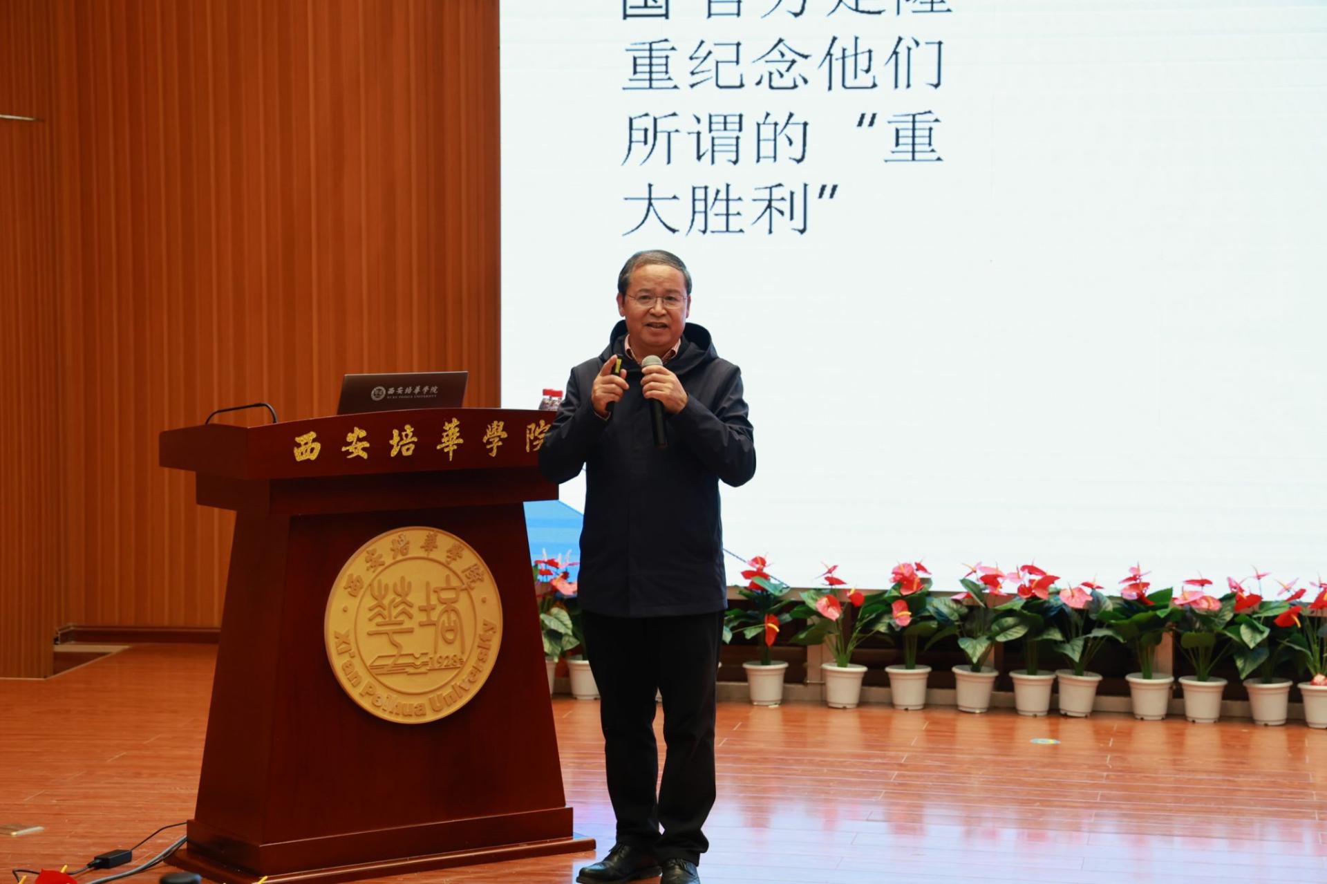 西安培华学院党委书记刘锋教授告诫与会师生,回顾历史不仅是为了纪念,更是为了从中汲取力量,希望通过这场报告,让每一位师生都能深刻感受先烈们的伟大精神和崇高品质,不断弘扬爱国热情和奋斗精神。