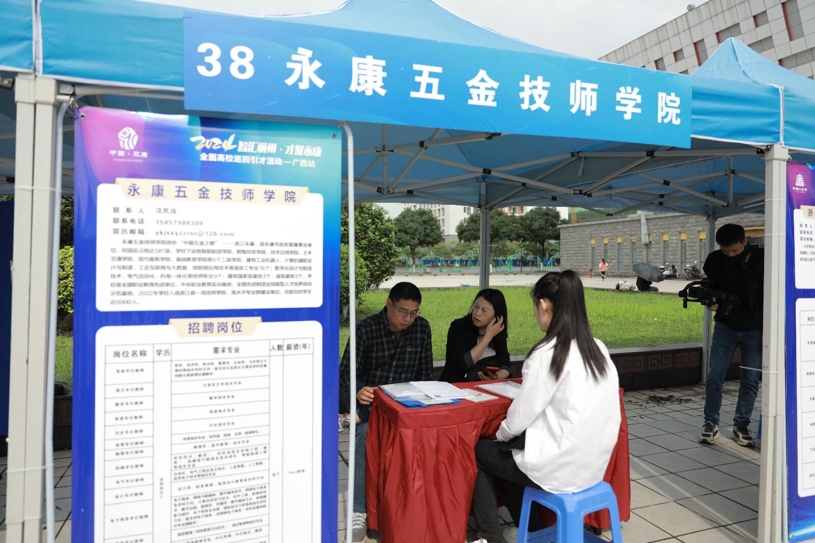 为深入贯彻党的二十大精神,全面落实党中央、国务院关于高校毕业生就业工作的决策部署,抢抓春季开学后促就业工作关键期,全力促进高校毕业生高质量充分就业。4月8日上午,“五金智造,才聚永康”广西站专场校园招聘会在南宁学院奠基广场举行。