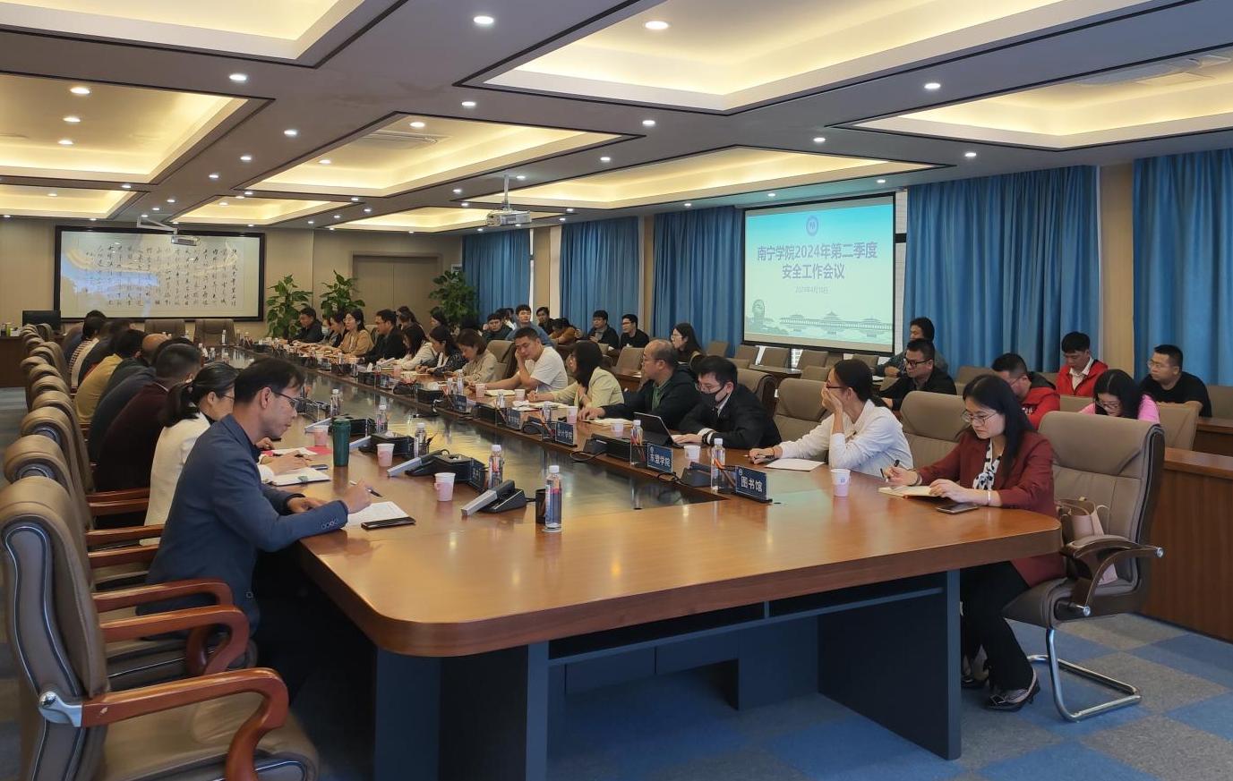 4月10日下午,学校副校长龚击在行政楼400会议室主持召开2024年第二季度安全工作会议。校党委副书记、副校长韦粤桂,警务联络官刘平,以及各机关部门、二级学院负责同志及联络员参加了会议。