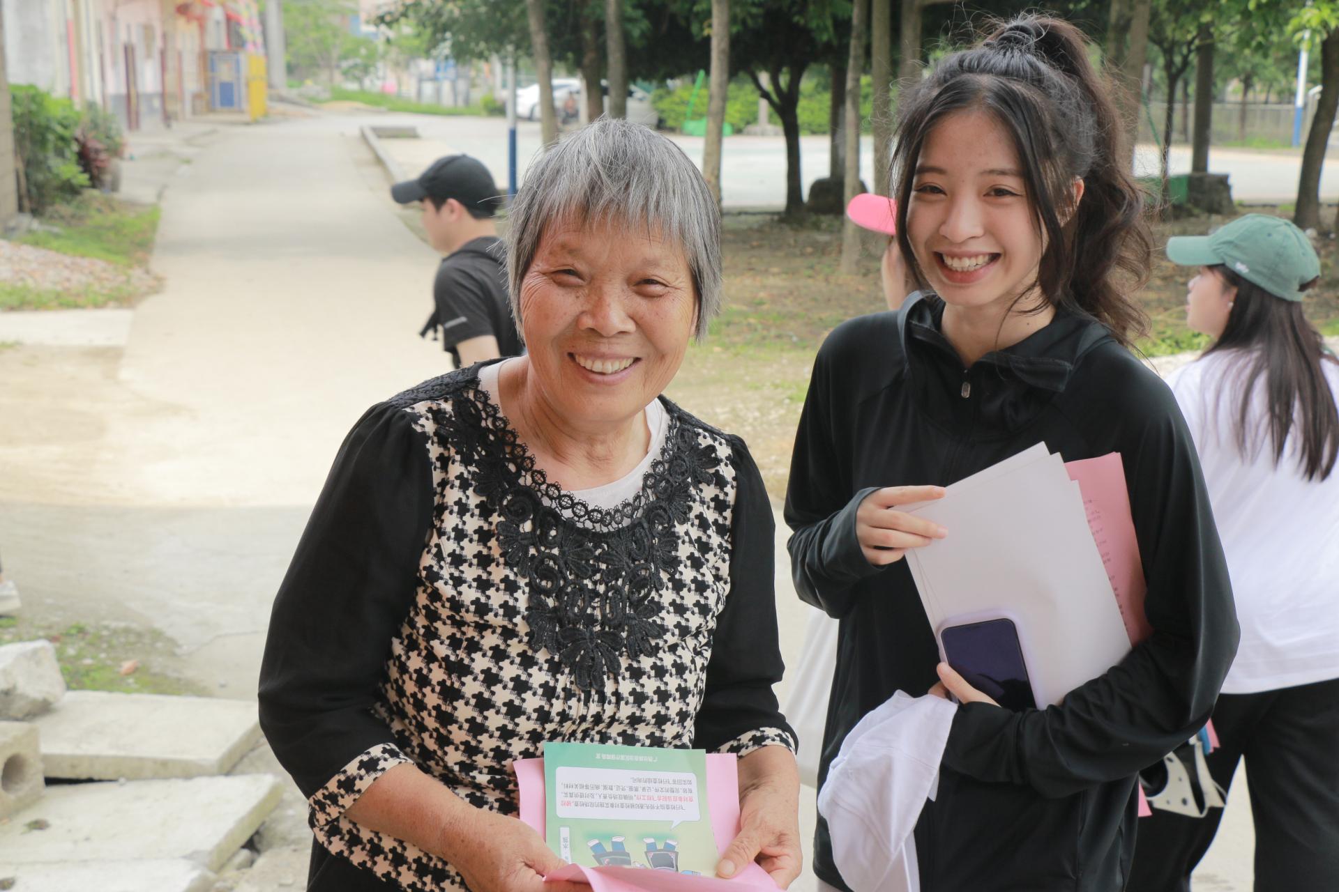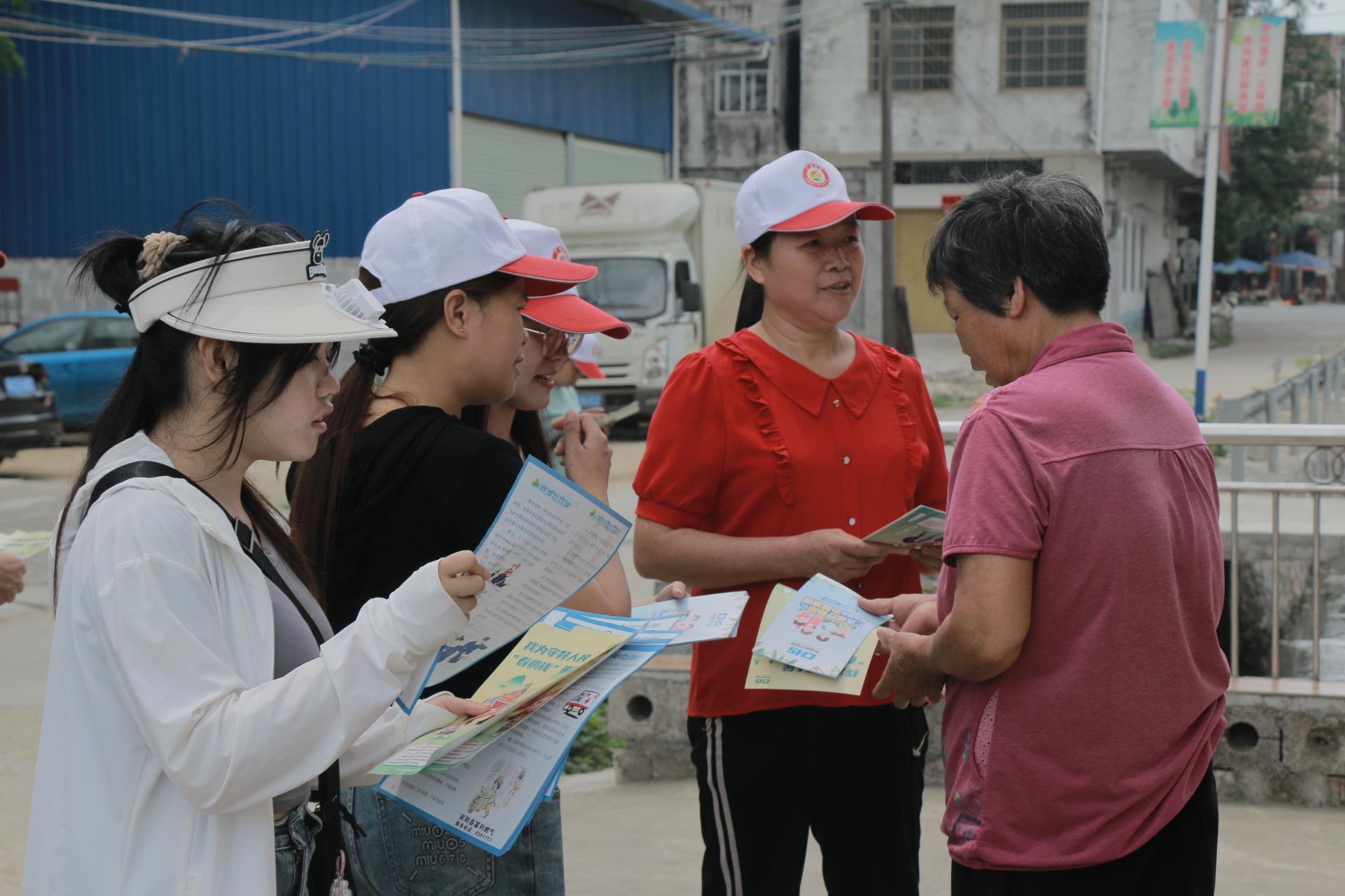 参加研学活动学生给村民开展乡风文明政策宣传