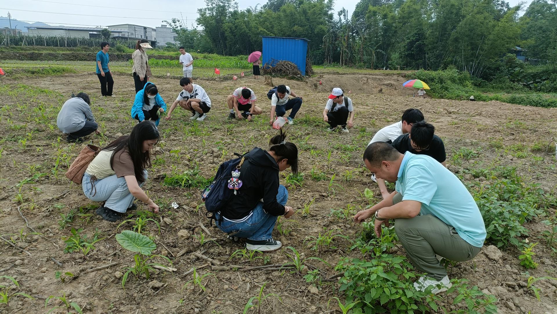 随后,参加研学活动的师生分成两组,一组走家进户宣传国家和学校资助政策以及乡风文明政策。在村委工作人员带领下,师生挨家挨户耐心讲解,特别是针对留守老人,师生耐心热情宣传煤气、用电安全意识和防诈宣传,并举例说明情况,尽量让留守老人简单易懂,进而了解和掌握,在日常生活中增强安全防范意识。另外一组则到田间体验为农作物除草。很多同学是第一次实地体验田间劳作,走在前往目的地的村间小道上不断想象干农活的场景,非常兴奋。到达目的地后,村干部给同学们简单讲解除草要求,同学们立即兵分五路,向“目标”进攻。大家在除草过程中,虽然汗流浃背,但欢声笑语不断,感受劳动的快乐。