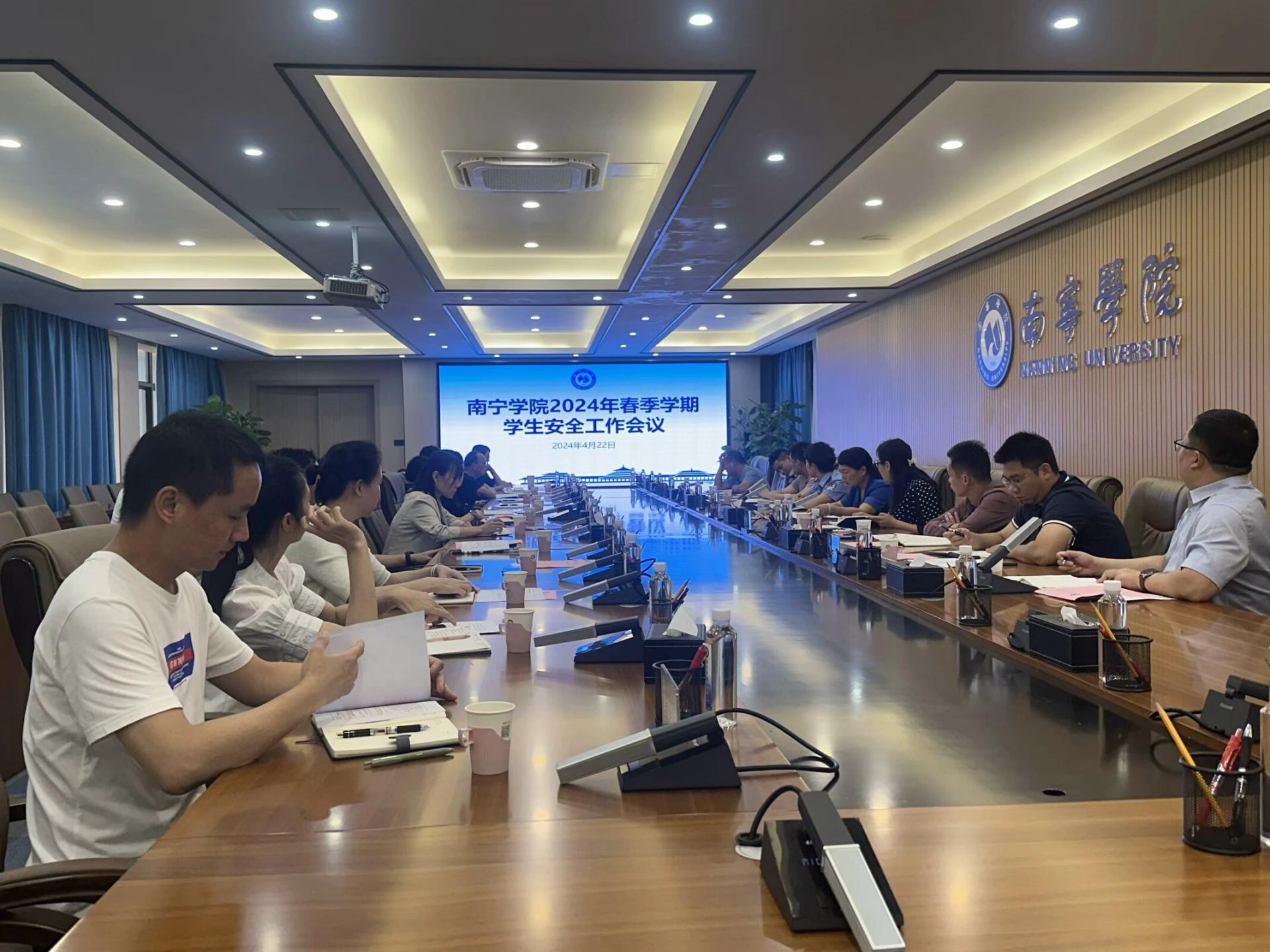 为进一步加强学生安全管理教育工作,夯实警校联动机制,提高学生学法、知法、守法和自我保护意识,构建和谐稳定的校园环境。4月22日下午,南宁学院召开2024年春季学期学生安全工作会,南宁学院党委副书记、副校长韦粤桂、学生工作部(处)、宣传部、后勤保障与基建管理处负责人,各二级学院党委(党总支)书记和副书记、邕宁公安分局龙岗派出所警官、学校警务联络官参加了此次会议。会议由学生工作处处长王静静主持。