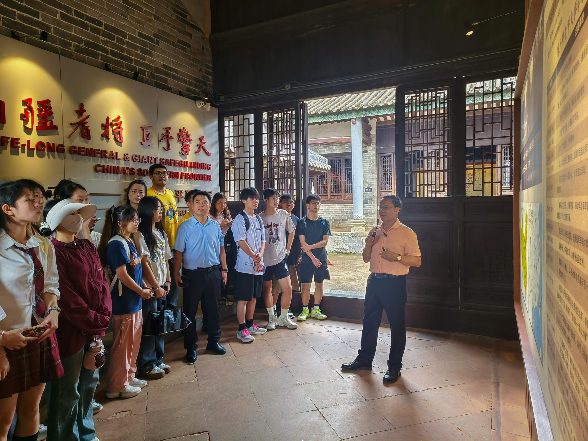 上午,课程组师生考察近代民族英雄冯子材和刘永福的旧居。在冯子材旧居,陈雄章教授讲述了1883年中法战争爆发,这场战争是清朝政权为了与法国争夺越南归属问题而发动的战争。在这场战争中,冯子材受命于危难,古稀高龄出任统帅,主动出击,奋勇抵抗,击败了法国侵略者,取得了镇南关大捷。这场战争展现了冯子材将军的军事才能、不屈意志和崇高的民族气节,提振了人民的抗敌信心。在刘永福旧居,陈雄章教授提及,1873年刘永福将军在纸桥伏击法国军队,史称第一次纸桥战,奠定了刘永福在越南的地位,被越南任命为越北三省军事主官,因此刘永福旧居也成为三宣堂;清朝派唐景崧诏安刘永福,刘永福投靠清军,带领黑骑军在纸桥第二次伏击法国,击毙法国三十多名军官,取得了不错战绩;甲午中日战争爆发后,刘永福部队被清政府派往台湾,抗日保台;1912年中华民国建立后,刘永福坚定地支持辛亥革命、孙中山事业,体现了刘永福将军思想的先进性。