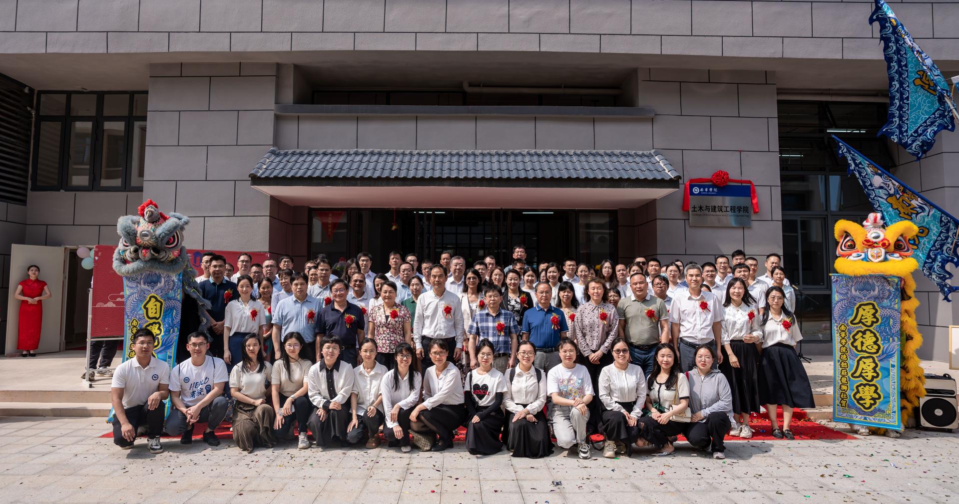 学校领导班子、各部门负责人与土木与建筑工程学院师生合影