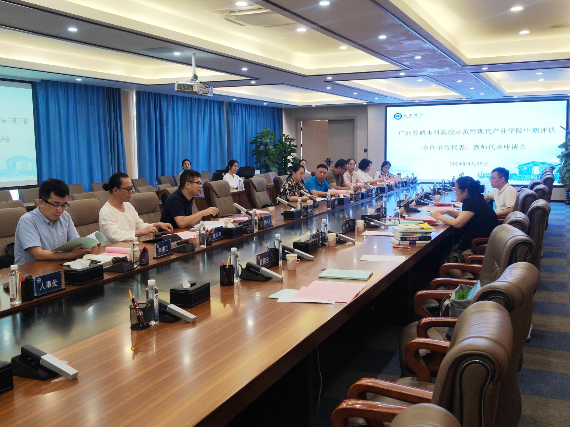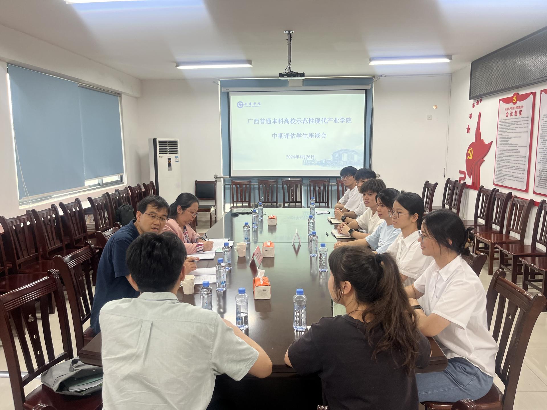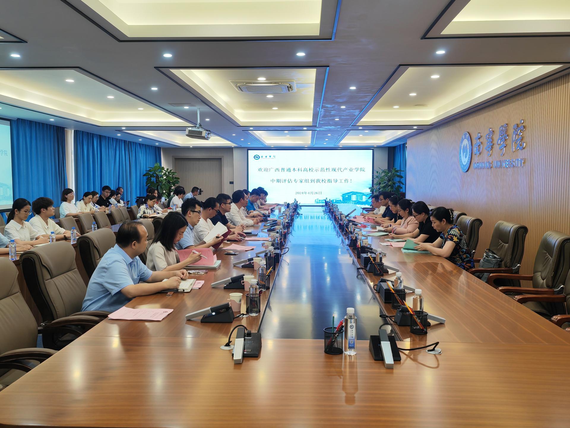 根据《自治区教育厅关于开展广西普通本科高校示范性现代产业学院中期评估工作的通知》(桂教高教〔2024〕5号)、《自治区教育厅办公室关于开展广西普通本科高校示范性现代产业学院中期评估现场评估的通知》(桂教办〔2024〕429号)文件要求,2024年4月26日,广西教育厅组织评审专家组对南宁学院食品质量与安全现代产业学院进行中期评估现场评估。学校校长李栋学、副校长陈雄章、人事处、科研与学科建设处、发展规划与合作交流处、审计处、财务处、教务处负责人、合作单位代表、产业学院管理人员及师生代表出席会议。会议由陈雄章副校长主持。