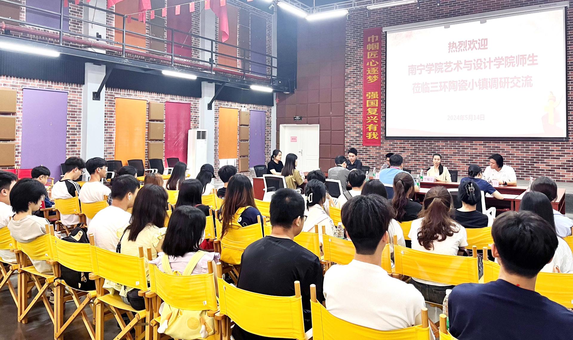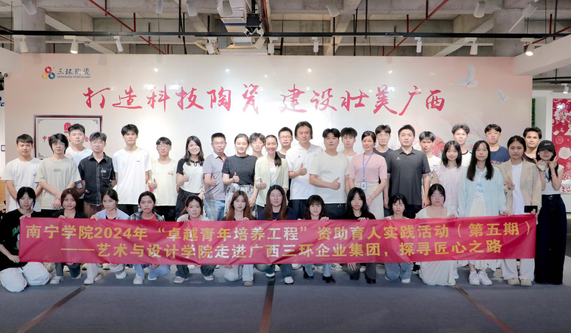 为进一步深化校企合作,拓宽受助学生专业视野,提升毕业生的就业竞争力,南宁学院艺术与设计学院师生于5月14日赴广西三环企业集团陶瓷小镇开展“卓越青年培养工程”资助育人实践活动(第五期),此次活动以“走进广西三环企业集团,探寻匠心之路”为主题。活动由艺术与设计学院党委副书记岑铭君带队,学院教师代表、受助学生共36人参加本次实践活动。