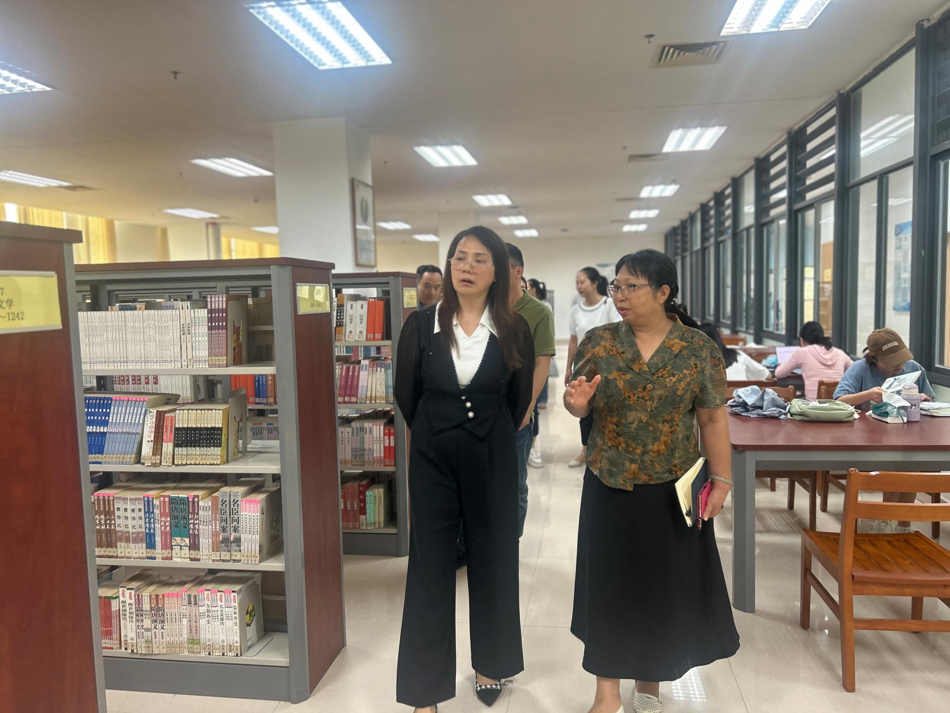 谢清馆长首先带领来访同仁们参观了馆内新书展示区、图书借阅室、考研专区、主题书展等区域,广西职业师范学院同仁们对我校图书馆温馨舒适的阅览环境和开展的阅读活动表示极为赞赏。