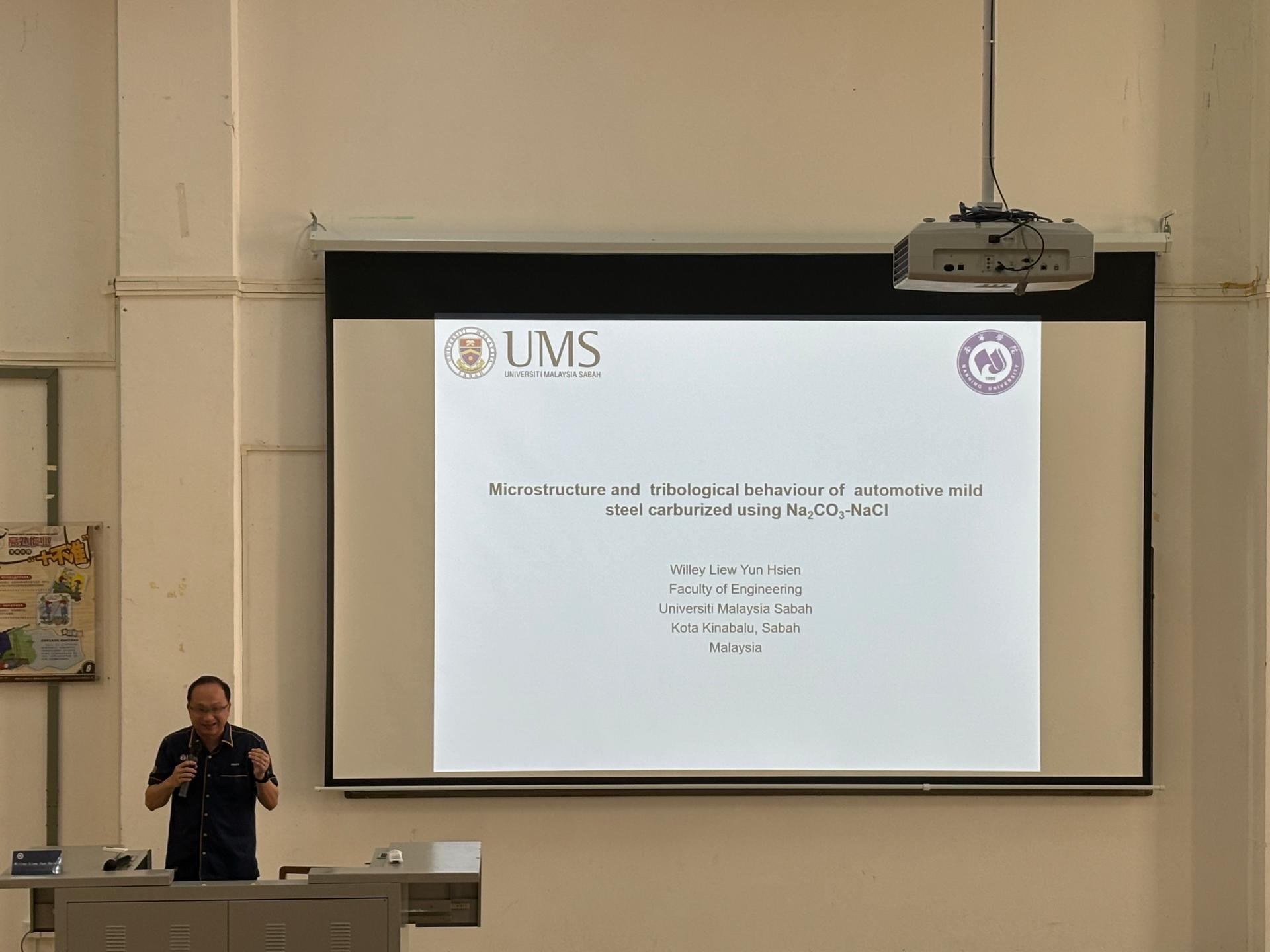 沙巴大学工程学院院长伊斯梅尔·本·萨阿德教授分享了他关于纳米电子器件小型化的计算建模与仿真的见解;威利·李云贤教授则介绍了Na2CO3-NaCl渗碳汽车用低碳钢的组织与摩擦学性能的最新进展;比利·蔡教授和穆罕默德·苏菲安·米萨兰教授分别就高速列车易损件再制造的定向能量沉积技术、CFD和CAD在运输系统热管理和能源效率方面进行了精彩的报告。重点实验室主任文旭光教授在总结发言中,对四位教授的精彩演讲表示感谢,并对未来的合作与发展表达了期待。