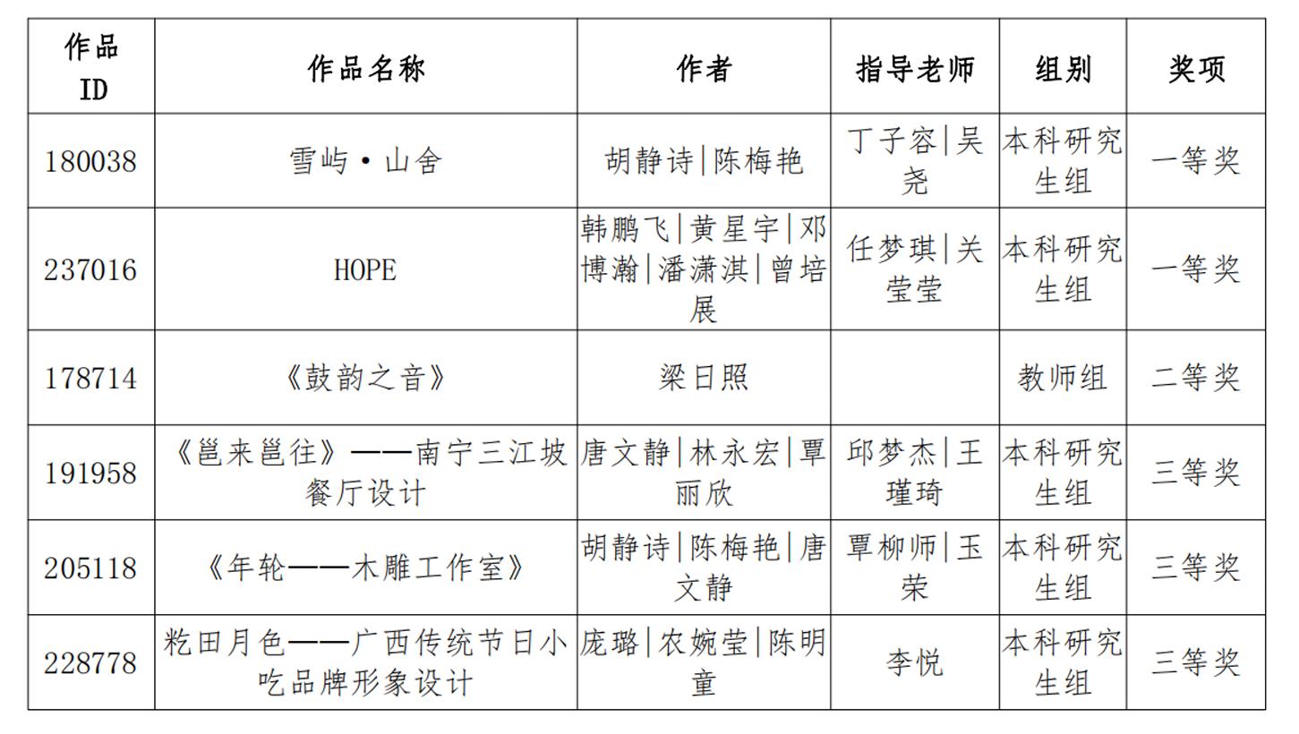 南宁学院艺术与设计学院师生团队在2024年第八届米兰设计周—中国高校设计学科师生优秀作品展全国赛中凭借独特的创意视角、精湛的设计技艺以及对地域文化的深刻挖掘,成功在众多参赛作品中脱颖而出,荣获国家级奖项6项:其中一等奖2项、二等奖1项、三等奖3项,并荣获优秀组织奖,这些成果,体现了我院注重对师生专业实践能力的培养。