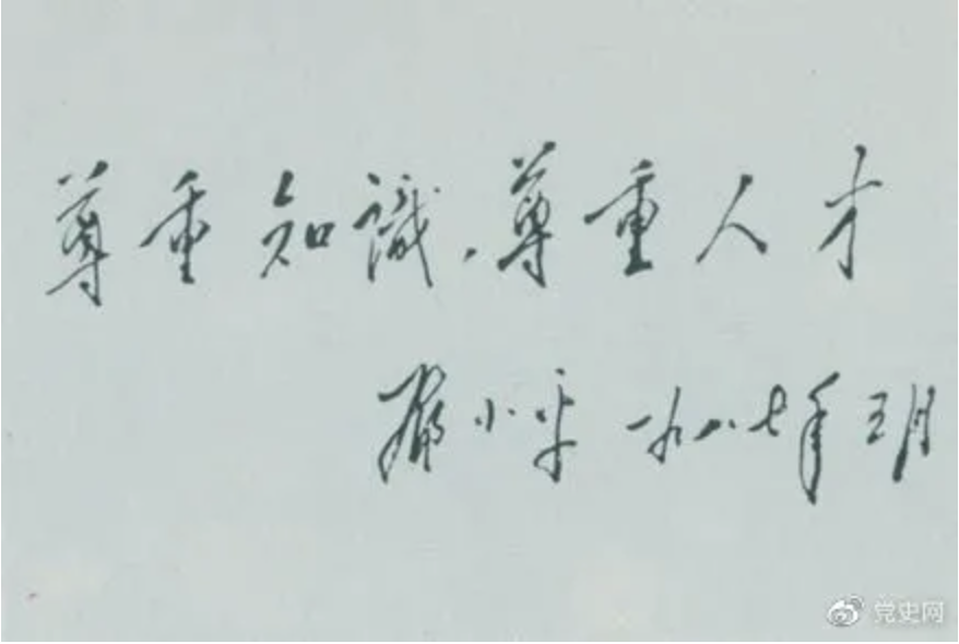 邓小平1987年5月的题词:尊重知识,尊重人才。