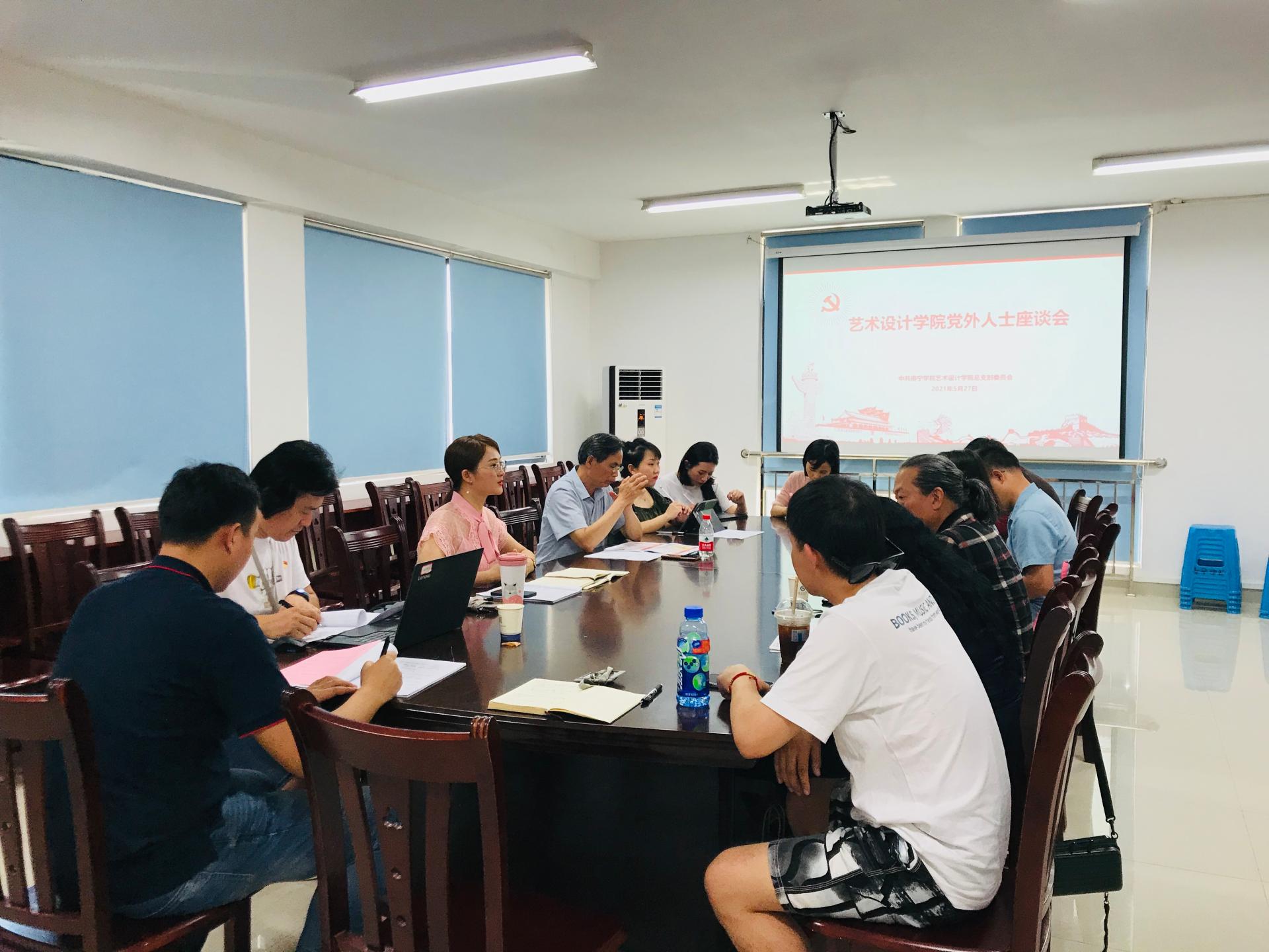 为充分发挥统一战线作用,集中智慧、凝聚力量,推进党史学习教育,发挥党外人士在学院建设发展中的积极作用,527日下午,艺术设计学院在行政楼421会议室召开党外人士座谈会。学院党总支书记杨伦超、副书记廖秀媛,党总支全体委员,学院党外人士教职工代表参加会议。会议由廖秀媛副书记主持。