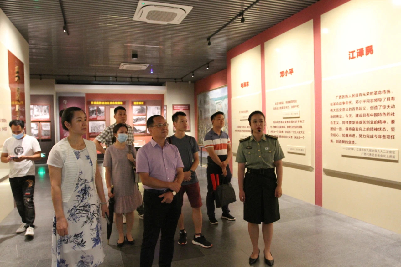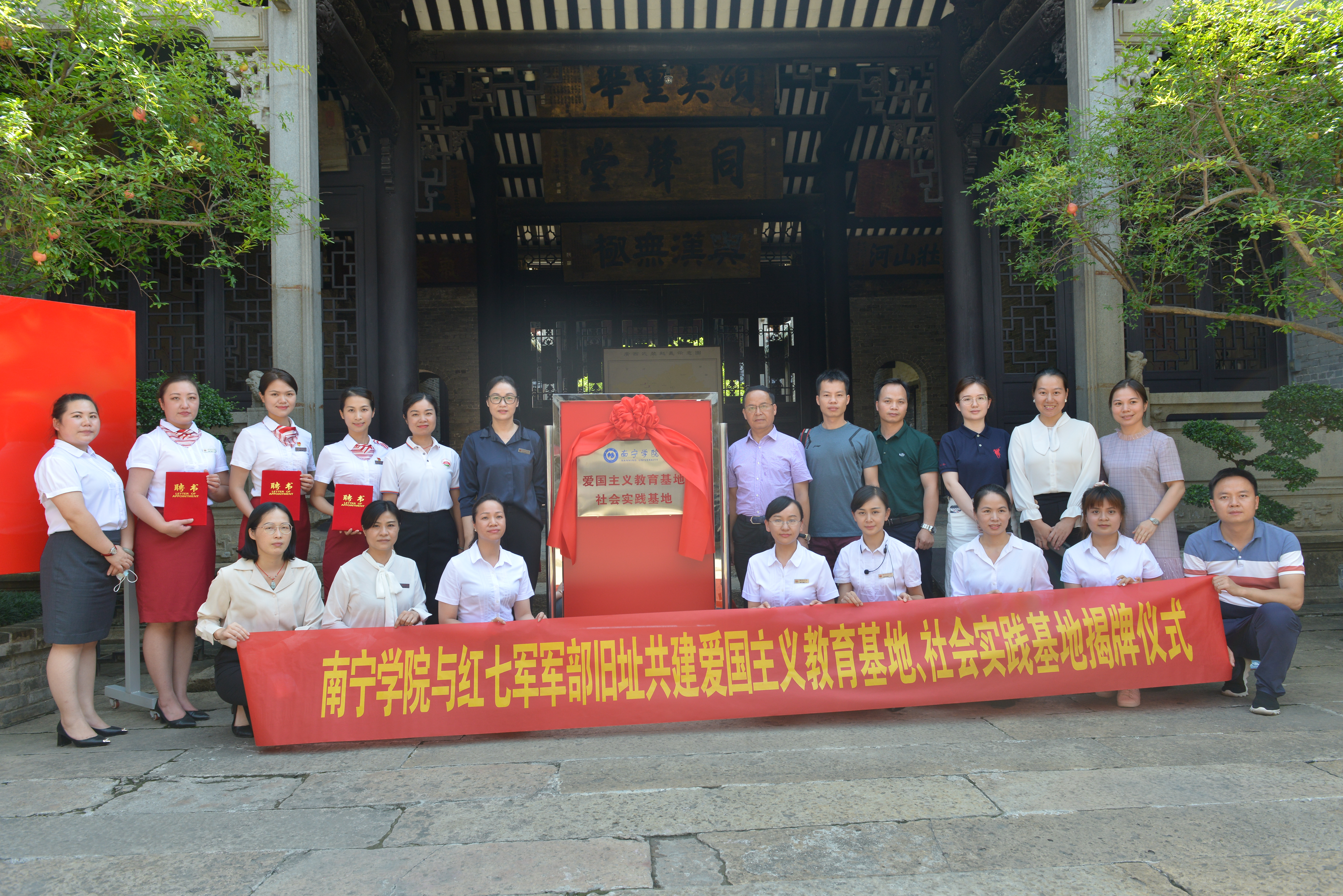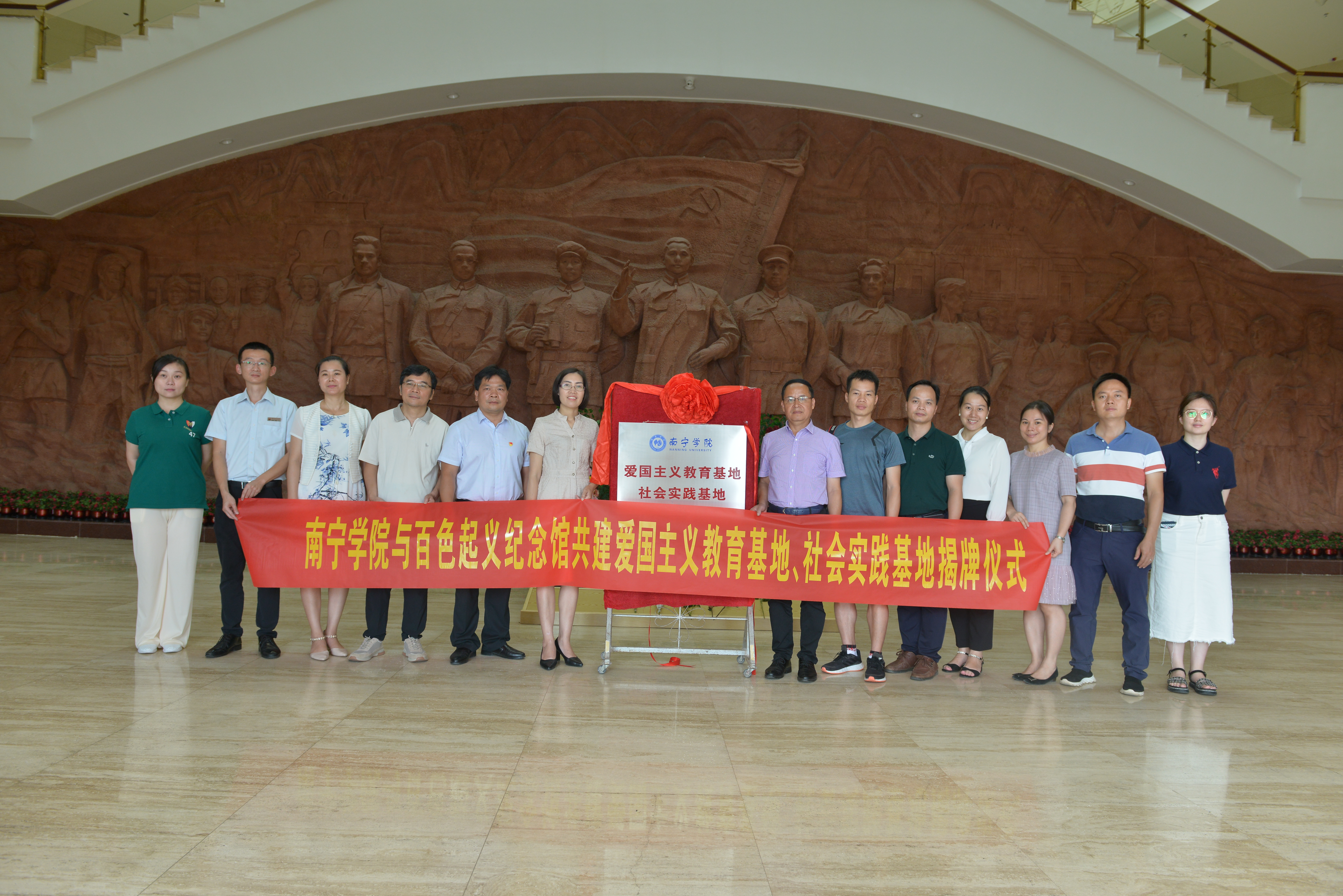 2021年6月4日下午,南宁学院副校长陈雄章带领教务处副处长蓝军斌、通识教育学院副院长蓝志军及产学研处产学合作科科长姚锦金等区一流本科课程《社会实践:传承英雄正气新体验》教学团队一行7人,赴百色市红七军军部旧址(粤东会馆)、百色起义纪念馆,与双馆共建爱国主义教育基地、社会实践基地,并举行签约、挂牌仪式。