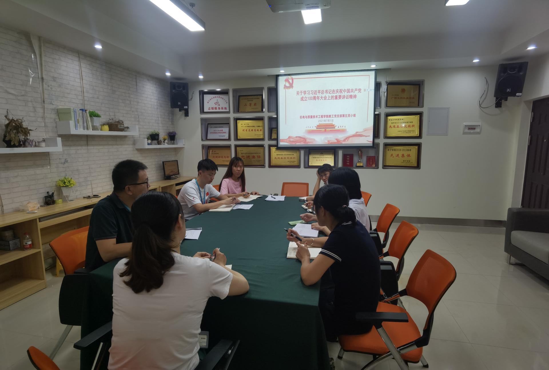学院党总支副书记李珠珠在辅导员活动中心主持召开了学院第五党小组学习会,学院第五党小组以学生科党员为主。李珠珠副书记强调了学习“总书记庆祝建党百年讲话精神”的重要性,我们作为教师党员,肩负着立德育人的责任,我们要继续弘扬光荣传统、赓续红色血脉,永远把伟大建党精神继承下去、发扬光大。各位教师党员纷纷发表了收看中国共产党成立100周年庆祝大会实况转播的感受,对自己作为人民教师,为能够共同回顾和见证党的百年风华感到无比自豪。在今后的工作中,将不忘初心,立足岗位,立德树人。