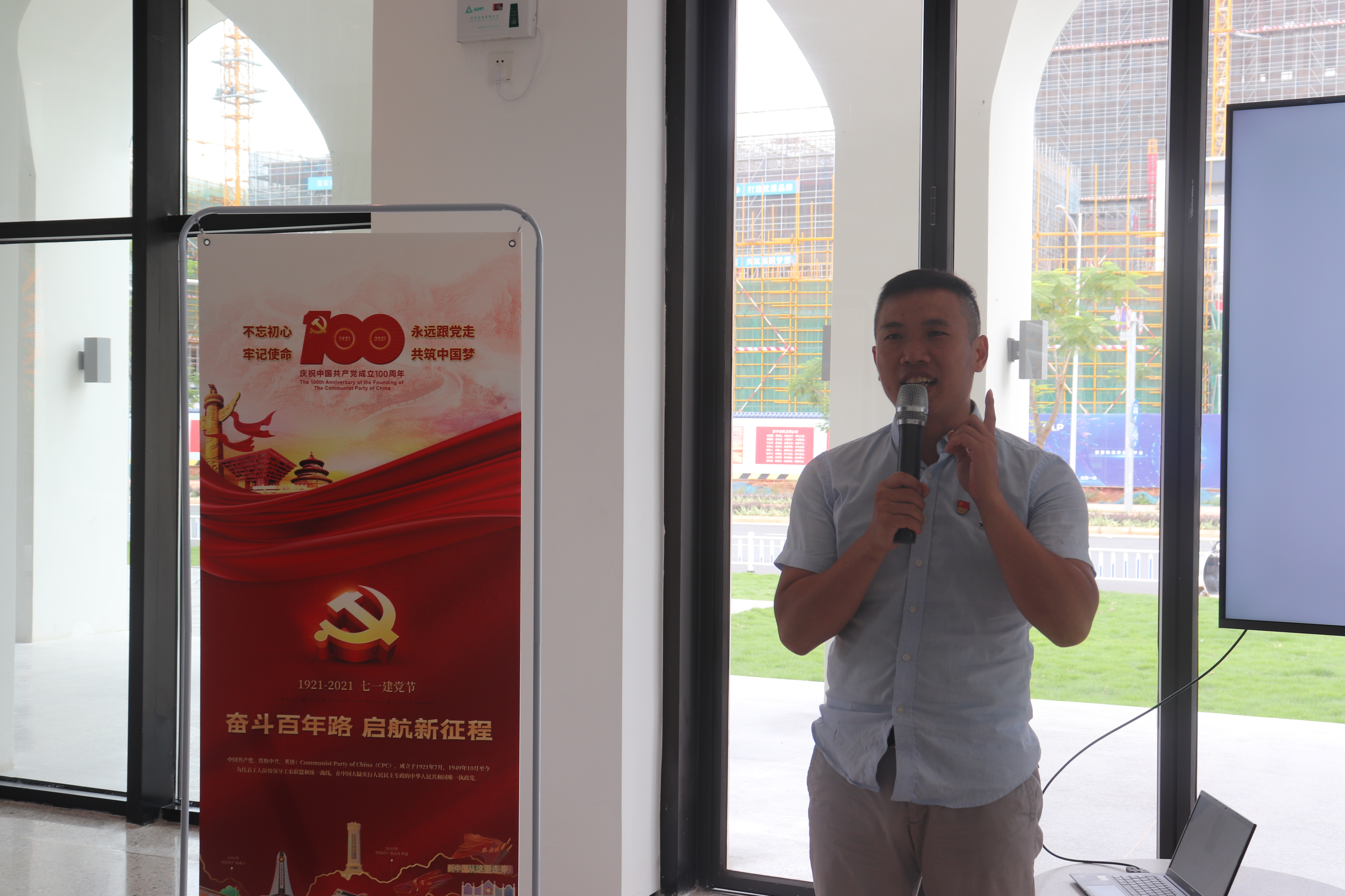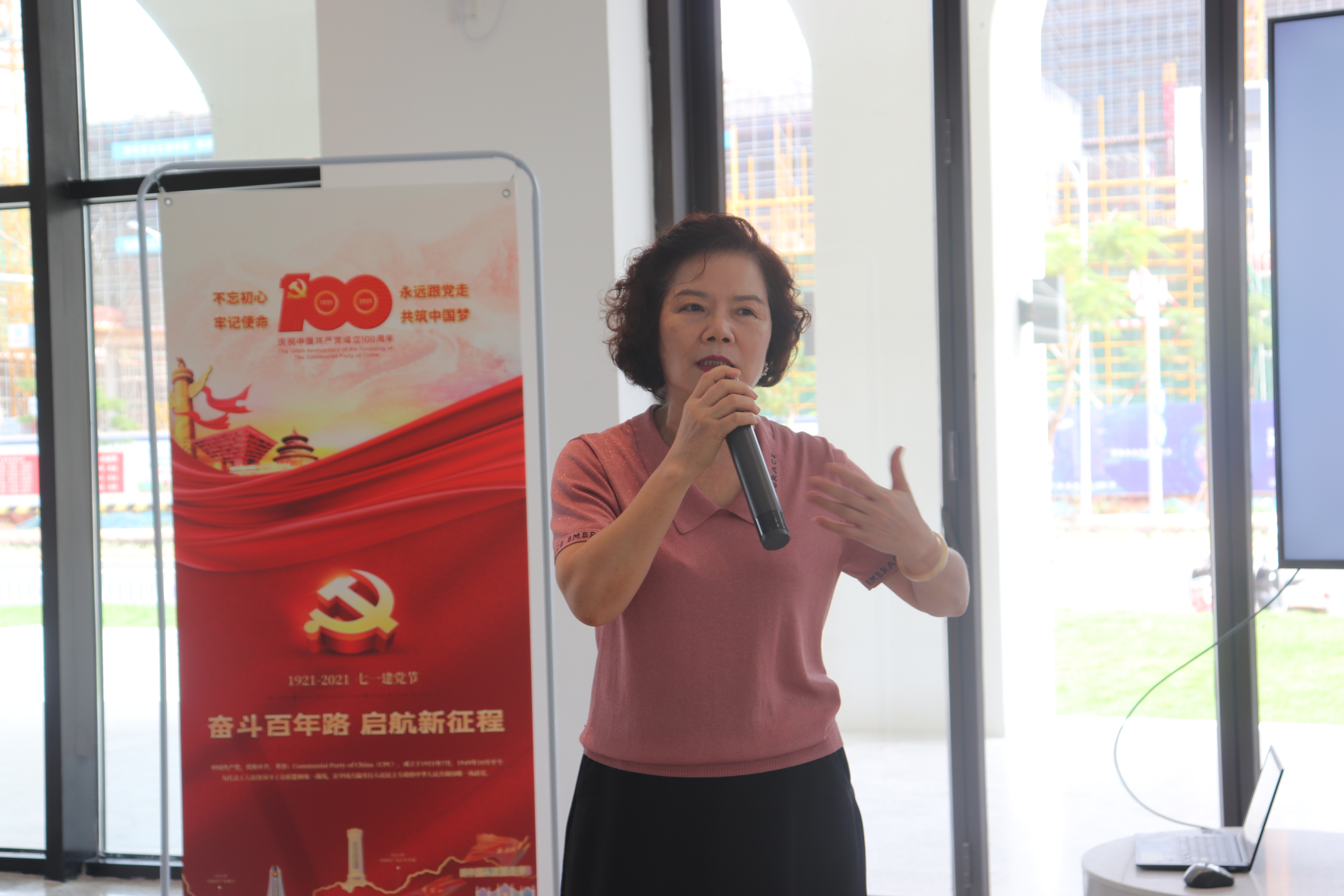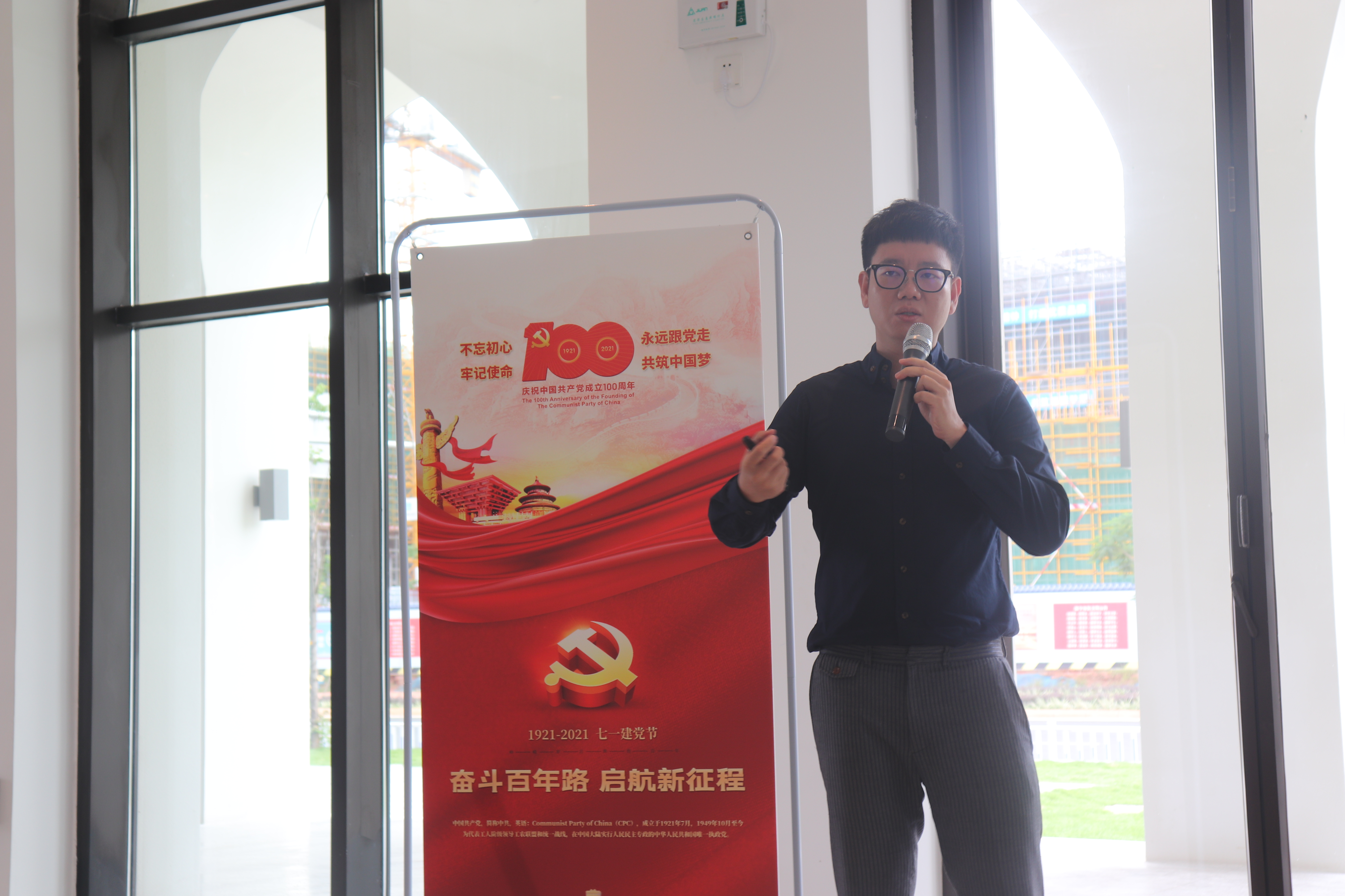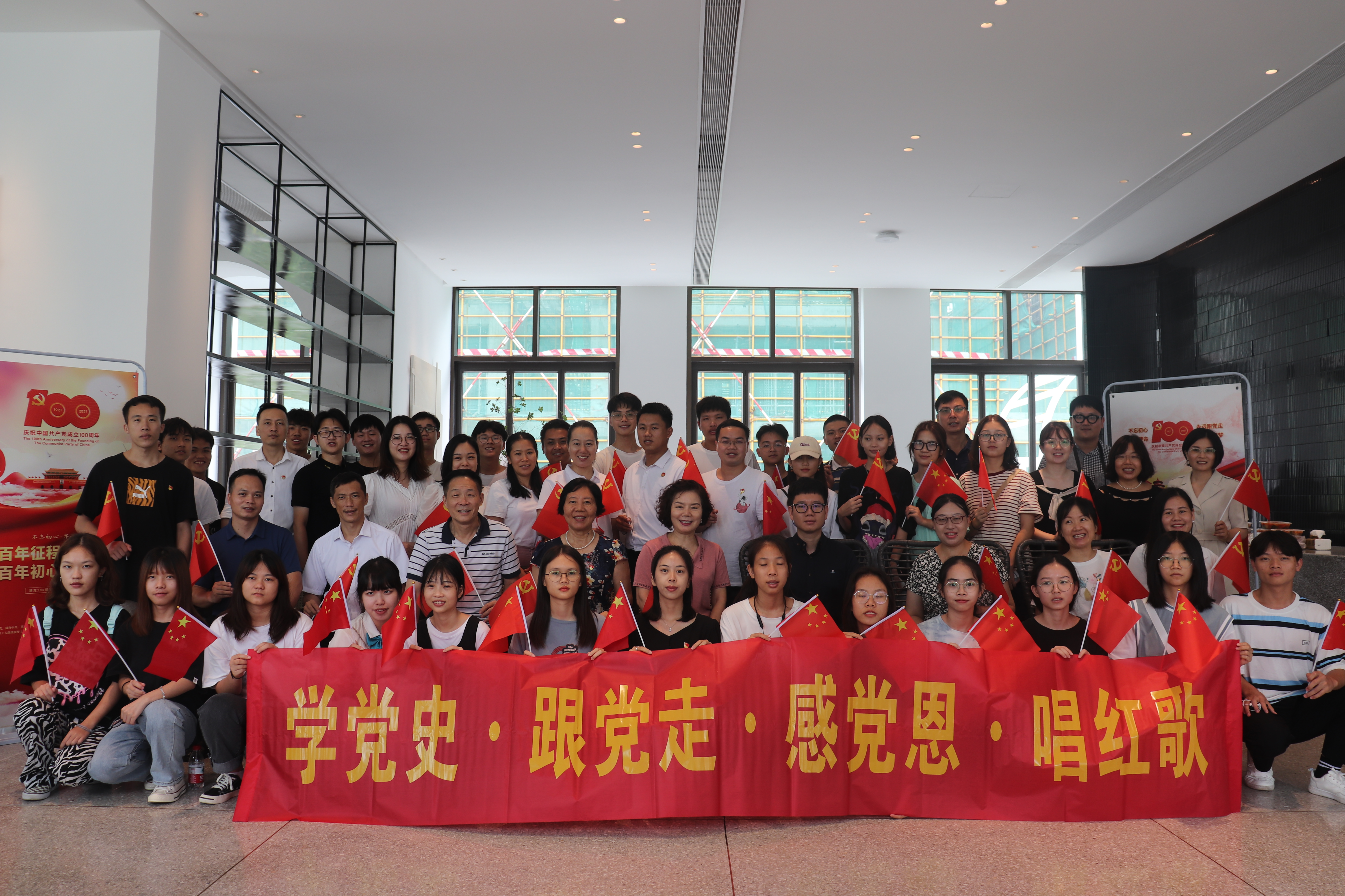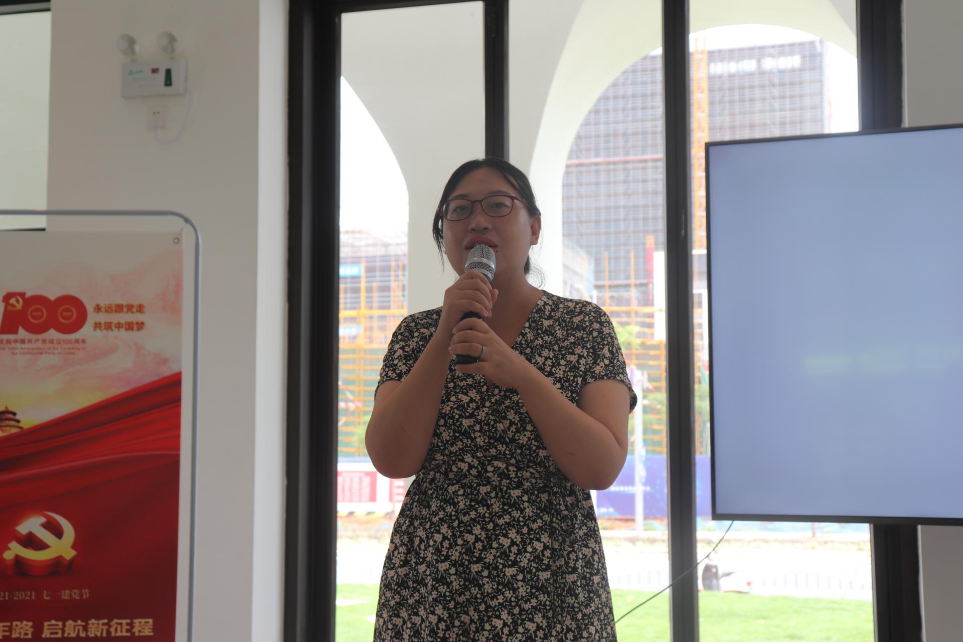 随后,党员教师代表和学生分享了建党100周年心得体会,冯志毅老师指出建党100周年国家日益强大,经济突飞猛进,作为当代年轻人将不忘初心,牢记使命,努力实现中华民族伟大复兴梦。土木与建筑工程学院学生黄兴荣认为他从实践活动中学到了建筑设计的风格、建筑力学、建筑美学、建筑色彩色温等专业知识。作为新时代的青年,要有责任有担当,争做新时代的领航者,坚定不移跟党走,为祖国建设贡献力量。广西海归党支部书记姚绚文和广西海归妇联主席赖琴燕分享了留学的经历,同时也讲解了邓小平、朱德同志的留学史,叮嘱同学们记住百年前大学生的样子,才能够明白当代年轻人的使命和任务,鼓励同学们用所学知识改变世界。