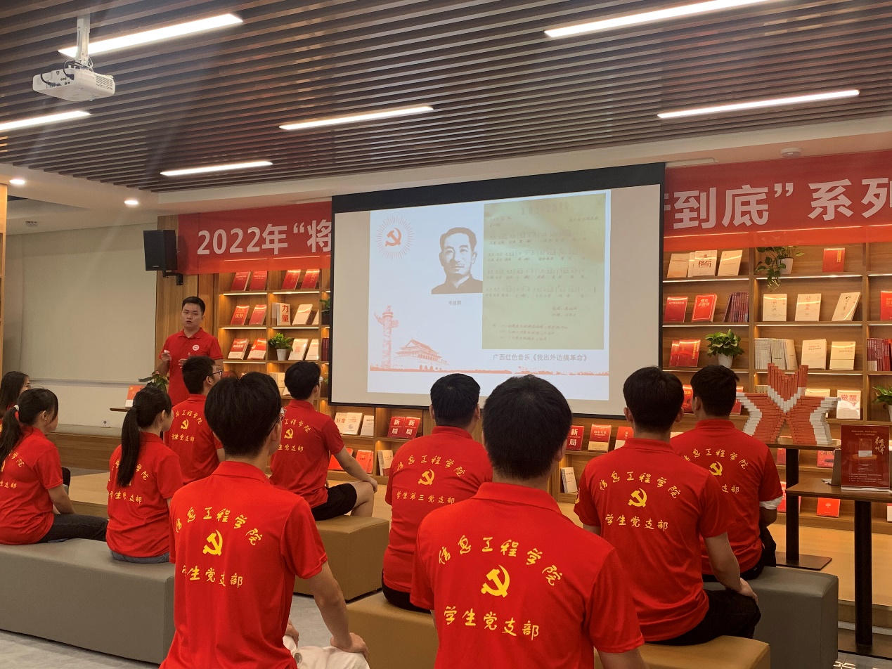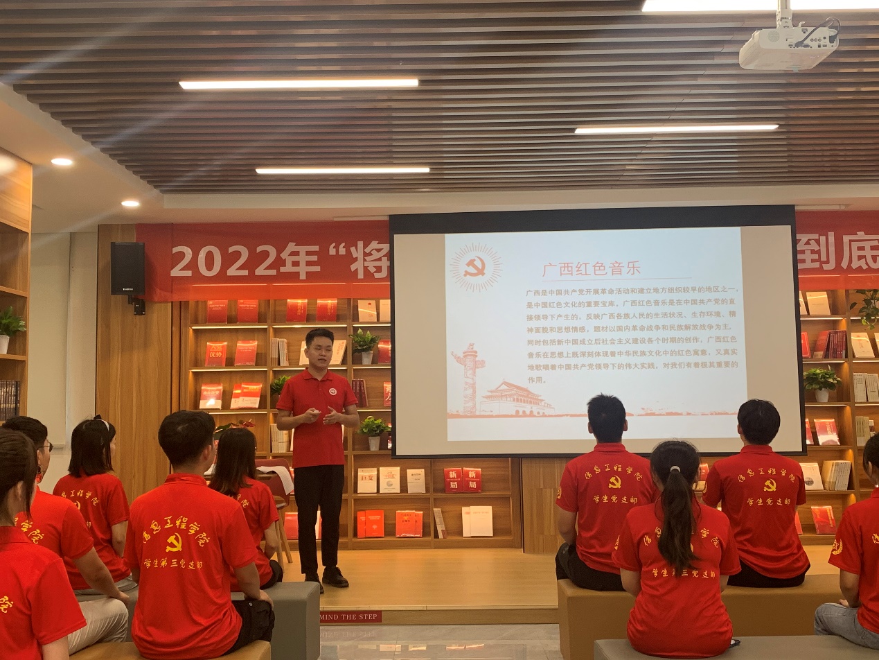 为深化“不忘初心,牢记使命”主题教育和党史学习教育,坚定理想信念,增强爱国主义情怀,2022927日上午10点,南宁学院信息工程学院学生第一、第二、第三党支部于南宁学院新华书店开展中国共产党人在广西——广西红色音乐主题党课,此次党课由鲁松老师进行开讲,信息工程学院学生党支部参加。