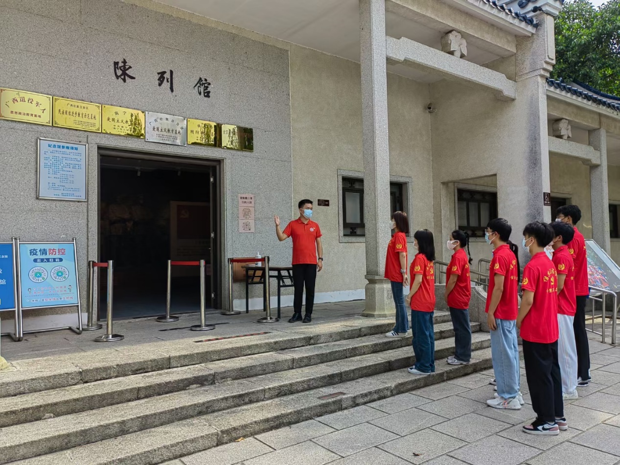 会议伊始,鲁松老师介绍了中国共产党成立百年来,广西红色音乐在八桂大地的发展概况,广西红色音乐是在中国共产党的直接领导下产生的,集中反映了广西各族人民的生活状况、生存环境、精神面貌和思想情感。接着围绕“开天辟地”“改天换地”“翻天覆地”“惊天动地”四个阶段介绍广西红色党史和广西红色音乐,最后通过社会实践的方式,带领学生党支部前往南湖公园百色起义纪念馆、广西民族音乐博物馆开展实地教学,集中讲解广西红色音乐文化。
