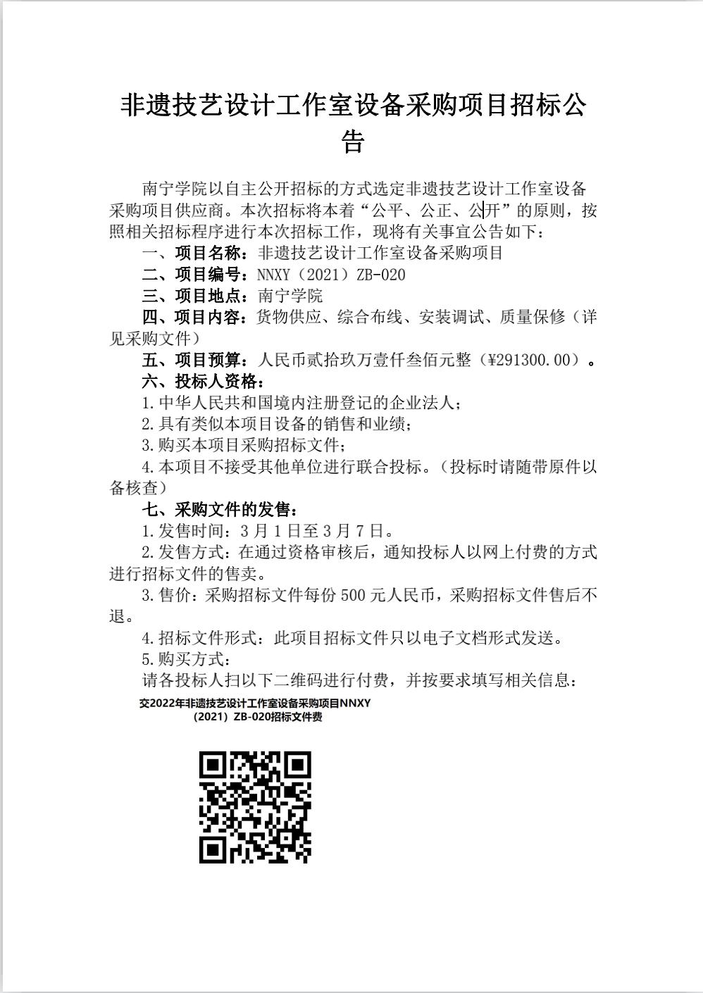 非遗技艺设计工作室设备采购项目招标公告