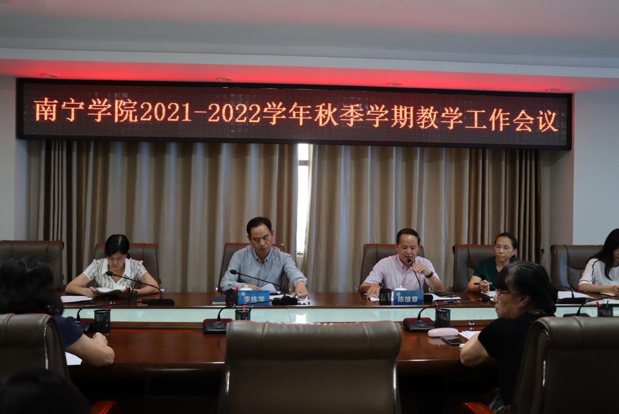 9月17日下午,南宁学院召开2021-2022学年秋季学期教学工作会议。李栋学校长、陈雄章副校长出席会议,教务处处长黄瓅,质量评估办公室主任胡晓敏,各学院院长、副院长、教务科科长、实验室主任等相关人员参加会议。会议由陈雄章副校长主持。