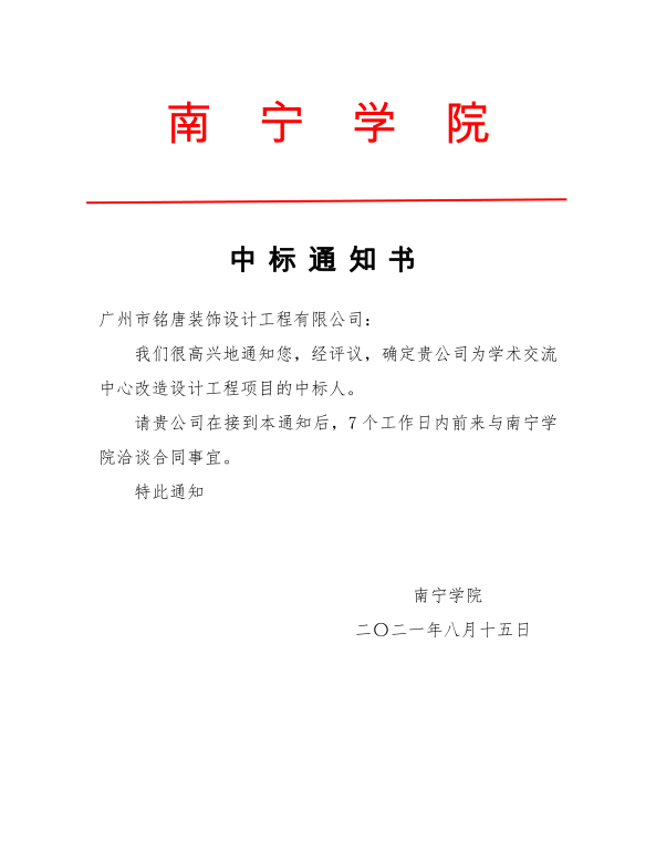 中标通知书